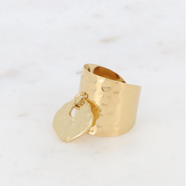 - Composée d'un anneau large martelé et d'une pampille losange martelée.