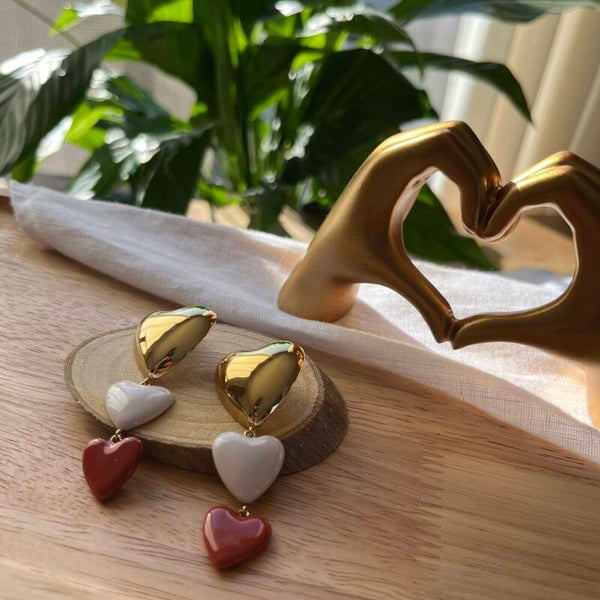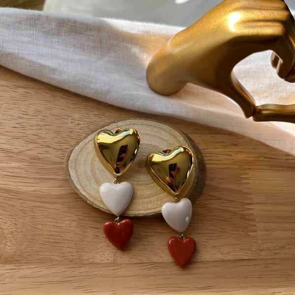 - composées de 3 cœurs aux volumes différents dont 2 en émail coloré.