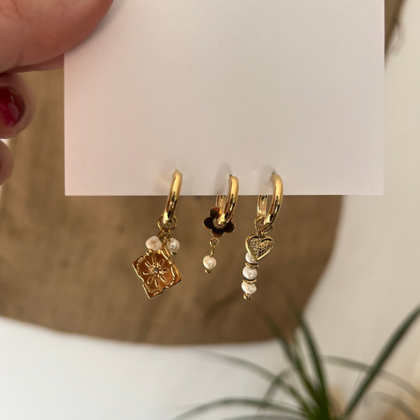 - Set de 3 boucles type créoles avec fermoir à charnière en acier inoxydable