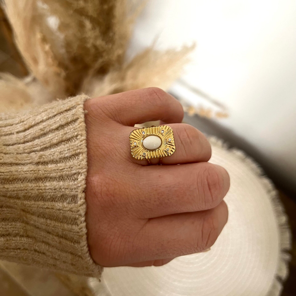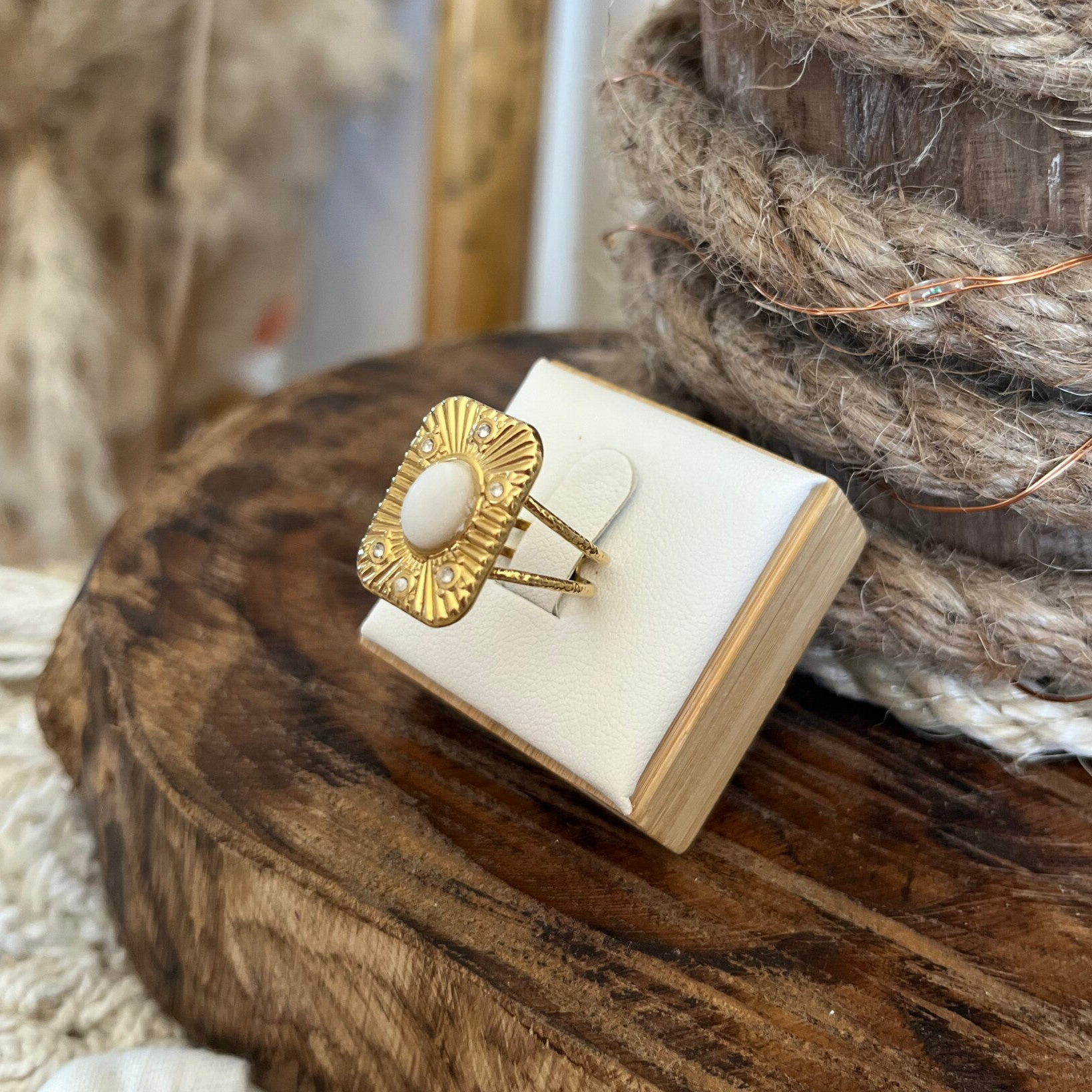 - Composée d'une pierre naturelle ( Jade blanc) ovale et ornée de strass