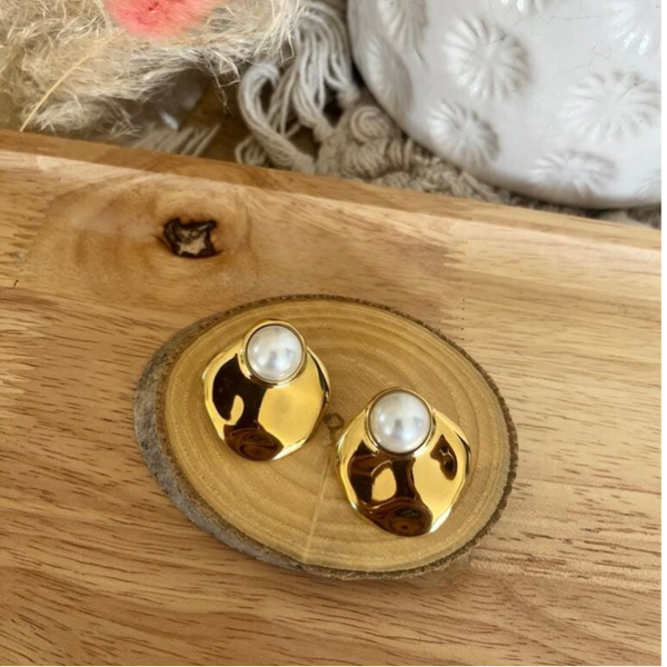 - Composées d'un cabochon rond en pierre naturelle sur une pièce légèrement martelée.