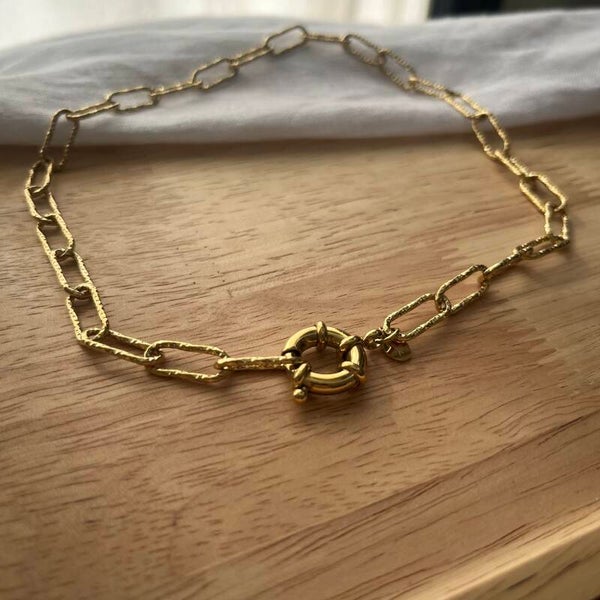 - Composé de maillons ovales diamantés et d'un fermoir type bouée