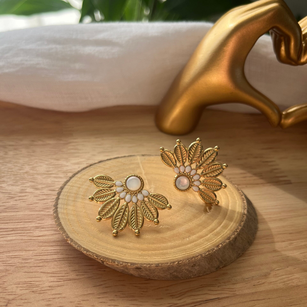 - Composées d'un motif ethnique floral gravé, embelli par des touches en émail coloré et par une pierre naturelle ronde.