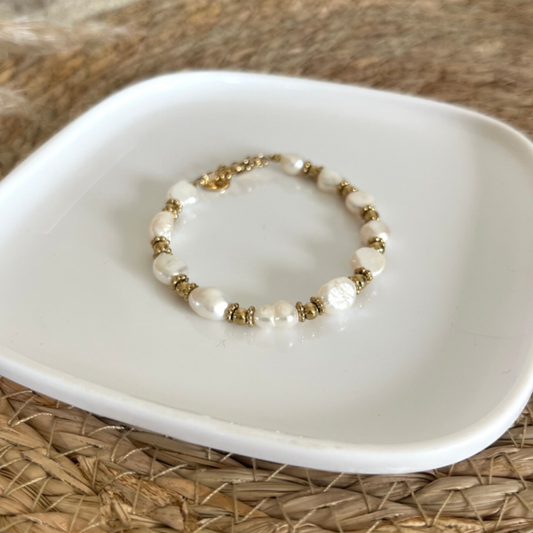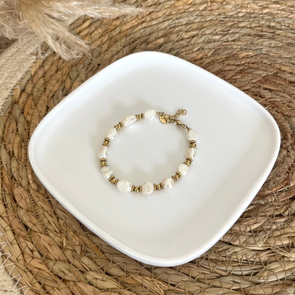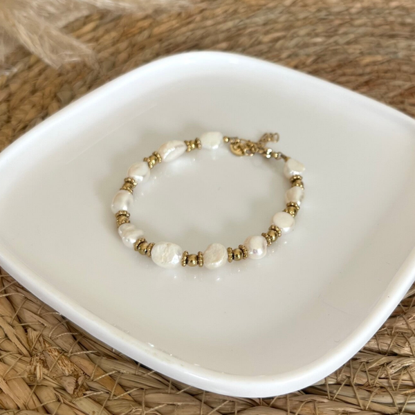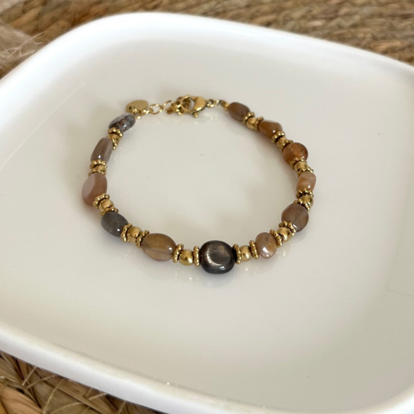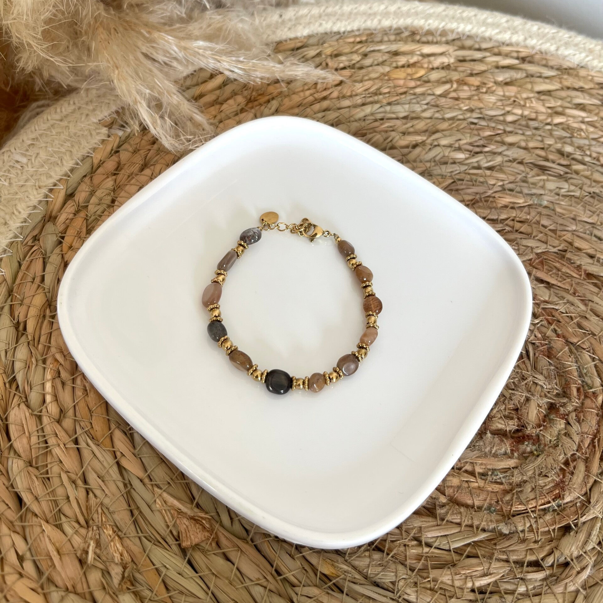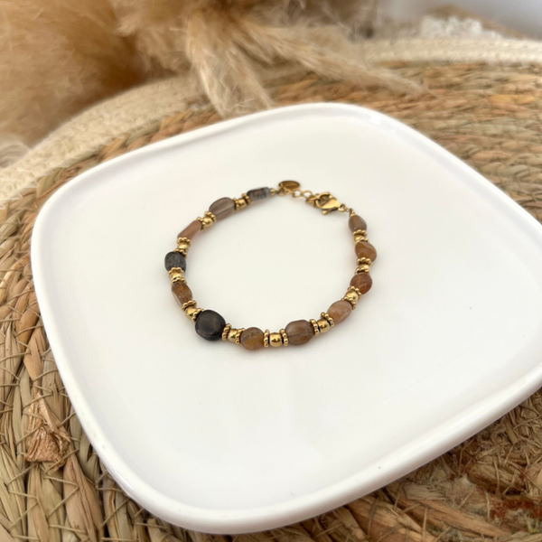 - Bracelet sur câble composé de pierres naturelles et de perles en acier inoxydable.