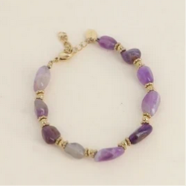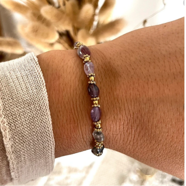 - Bracelet sur câble composé de pierres naturelles et de perles en acier inoxydable.
