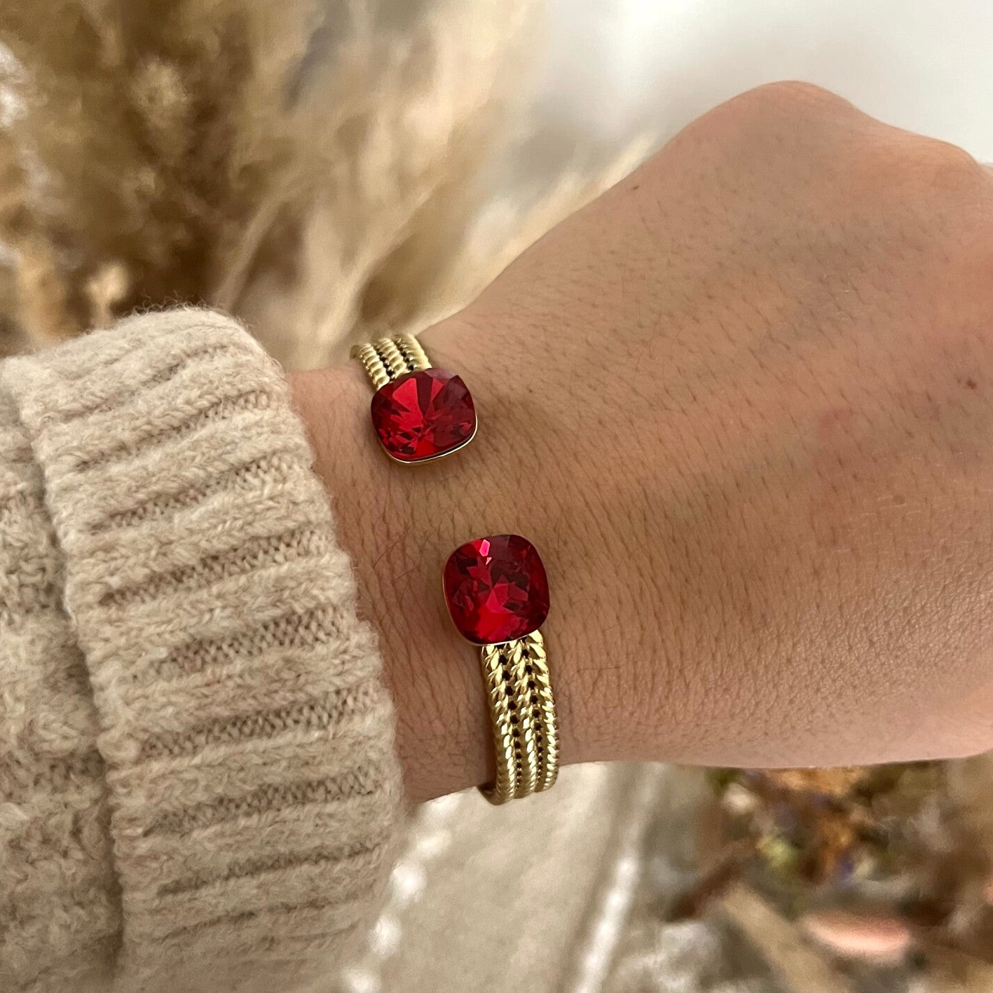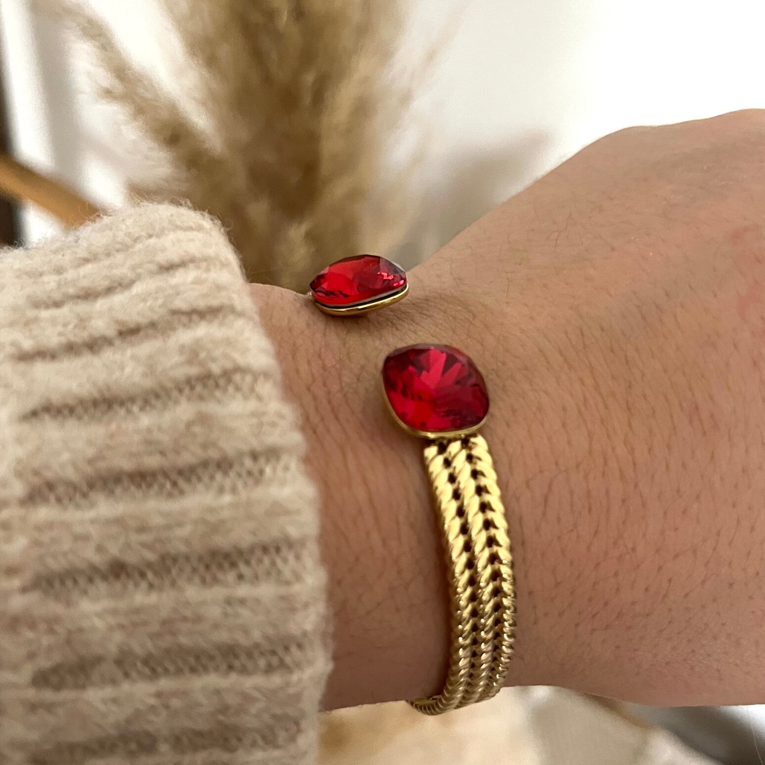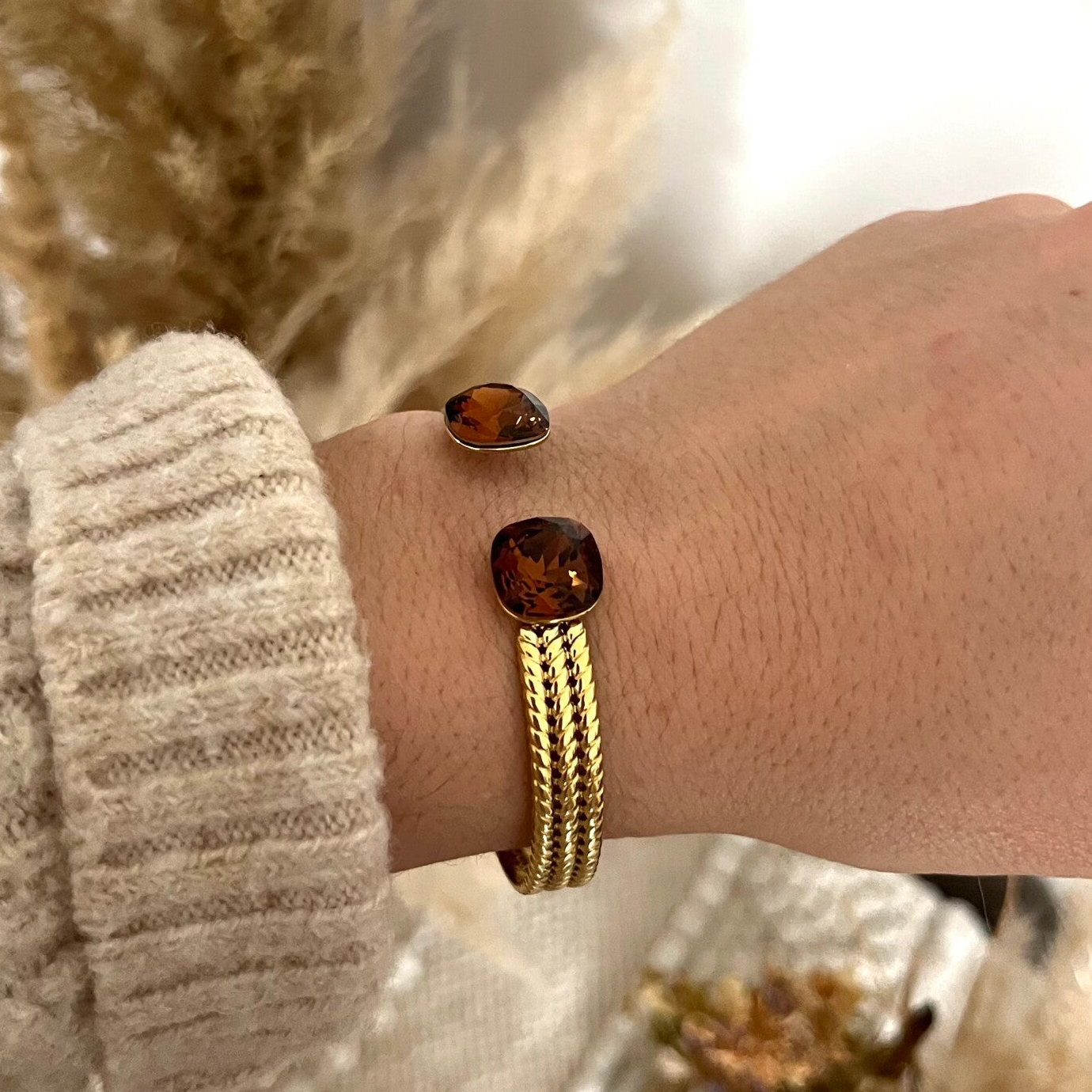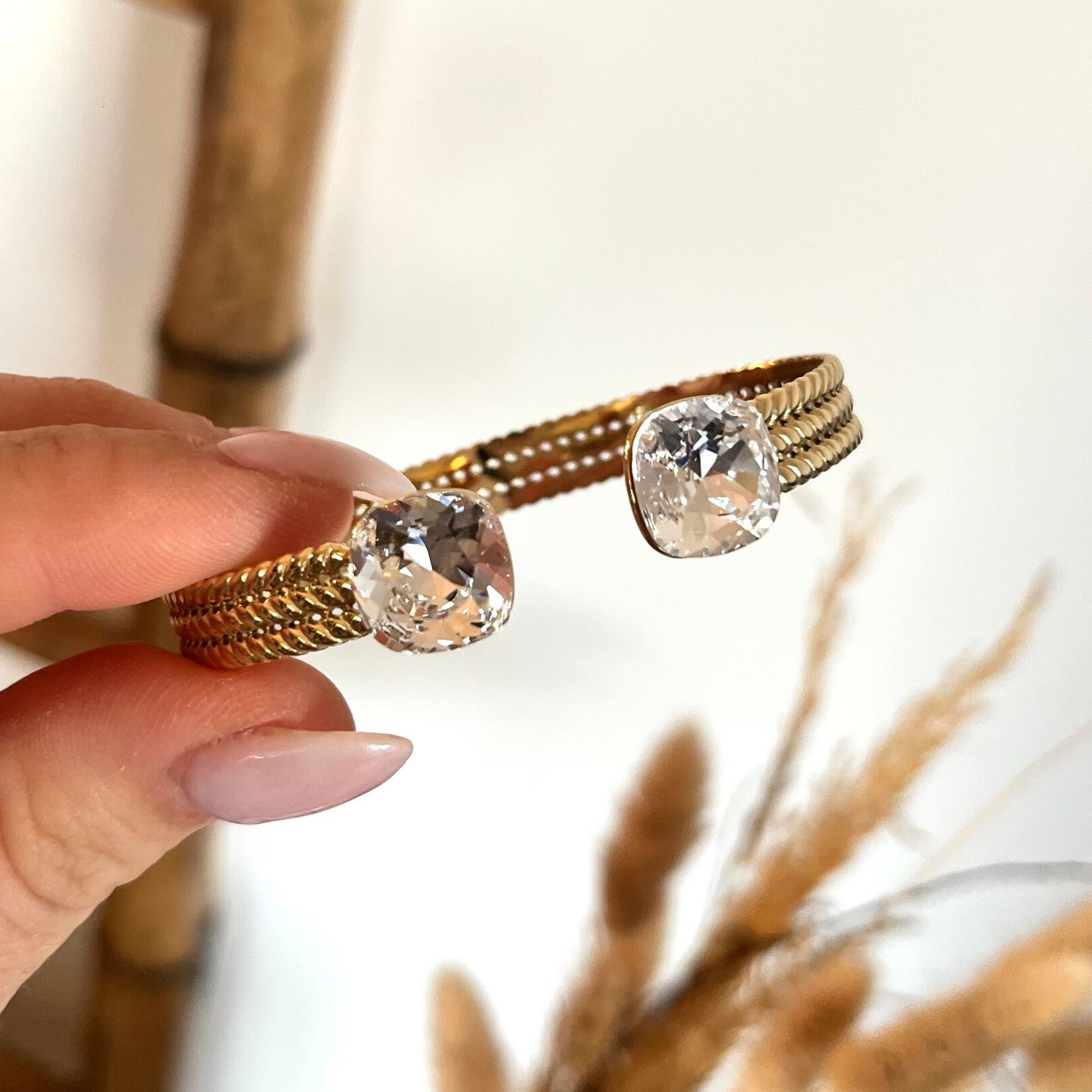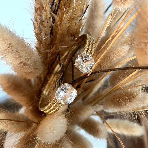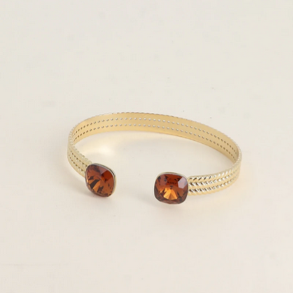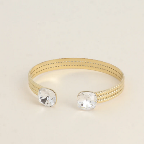 • Jonc en acier inoxydable effet tressé orné de deux cristaux de Swarovski®. Malléable, le jonc se resserre ou s'agrandit.