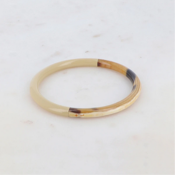 Chaque jonc est une pièce unique, la couleur de la corne naturelle peut varier et ne sera donc pas forcément identique à celle de la photo. Les nuances sont variables (beige, blanc, marron..)