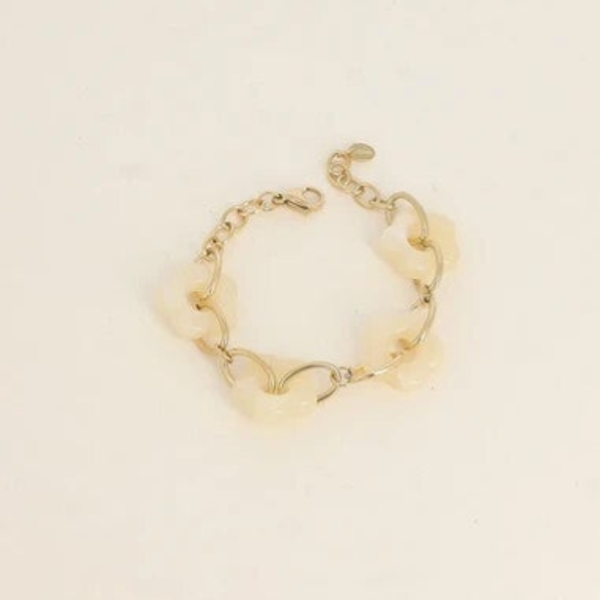 - Bracelet sur chaîne en acier inoxydable composé de fleurs en résine et de maillons ovales.