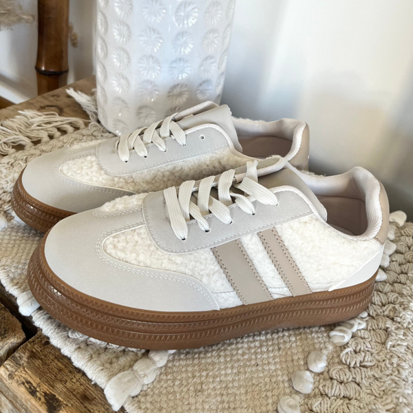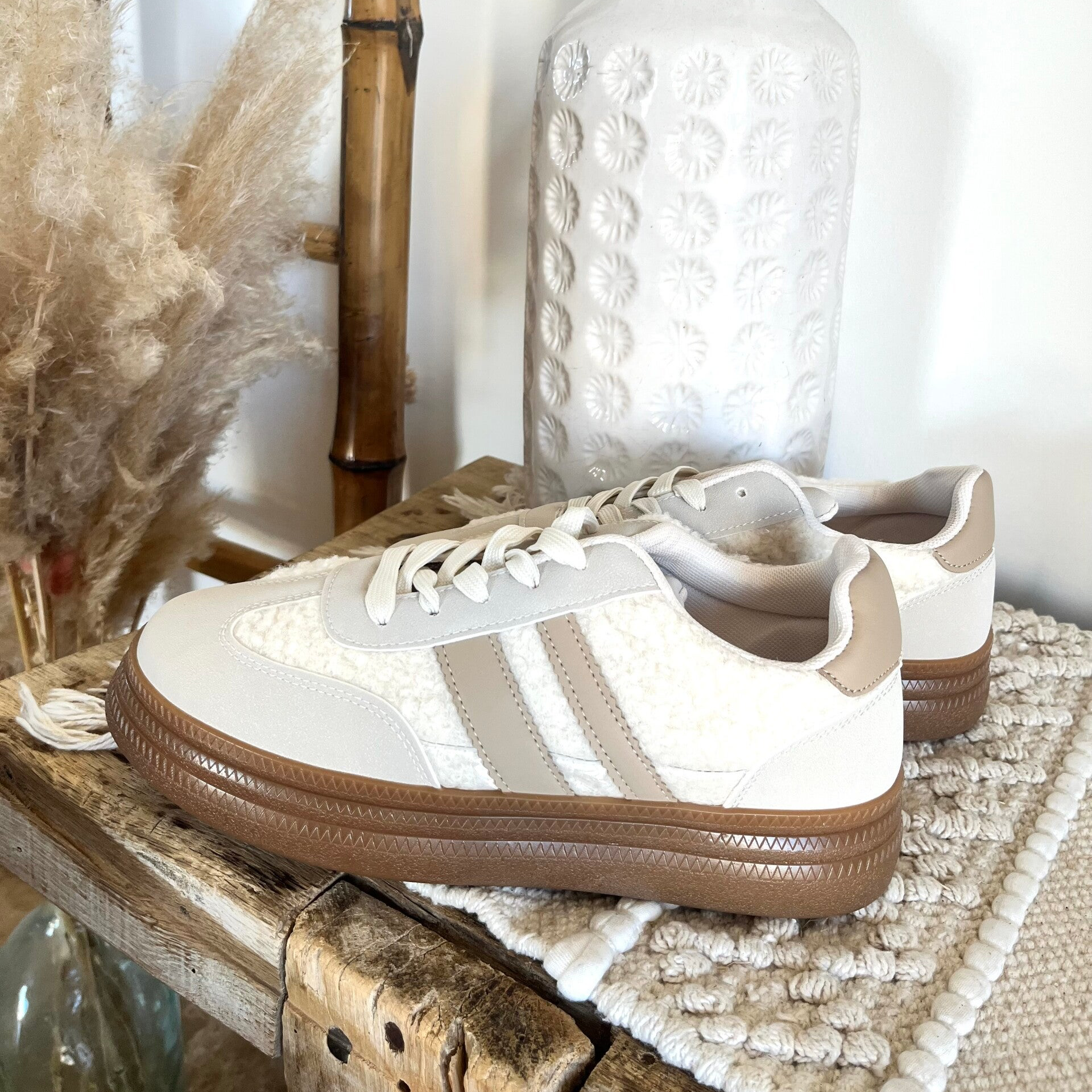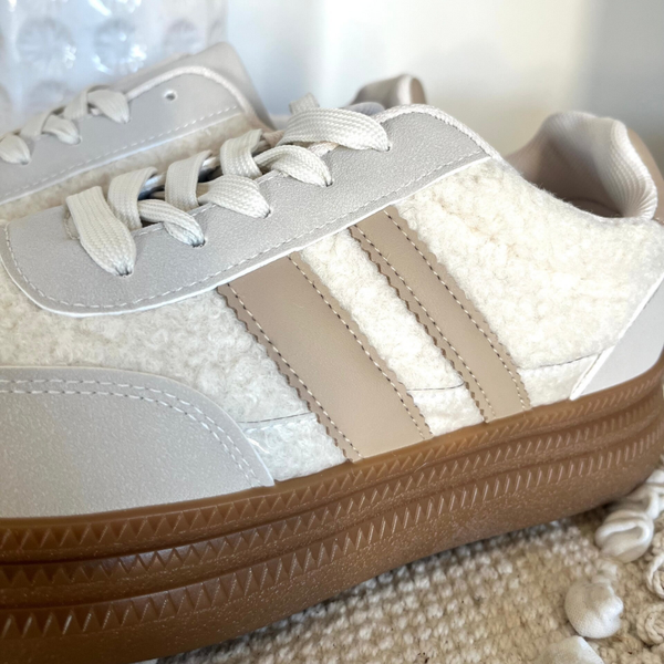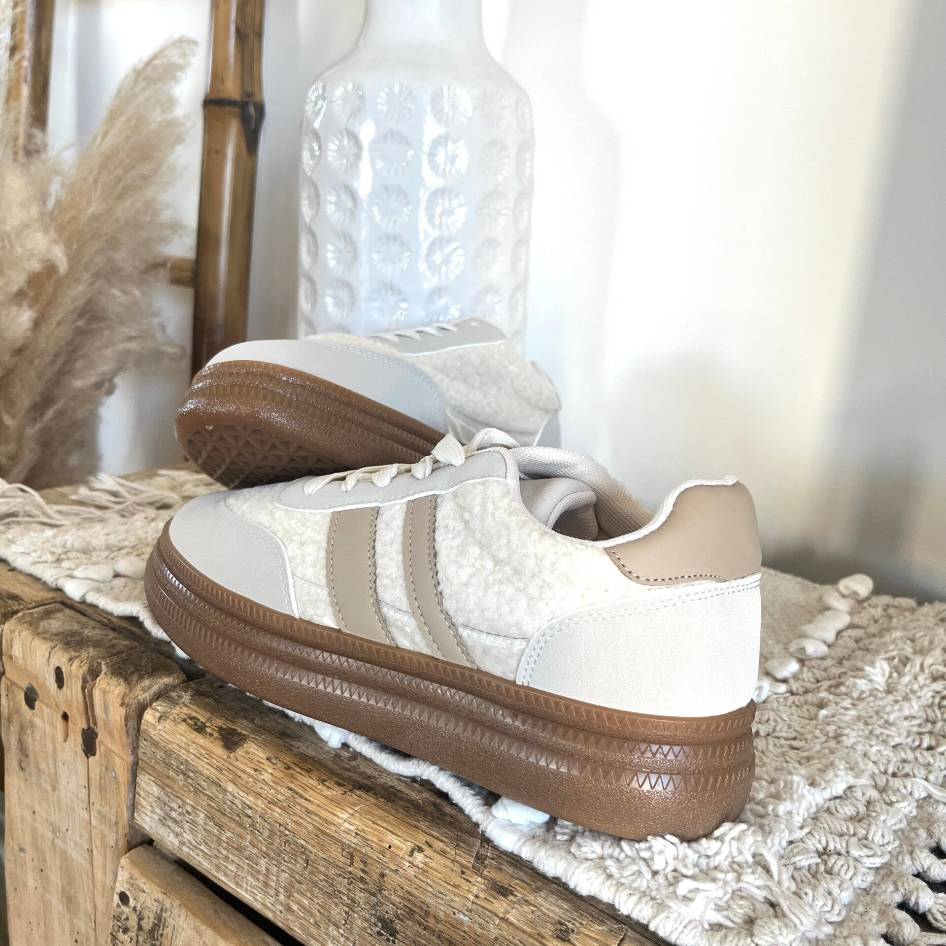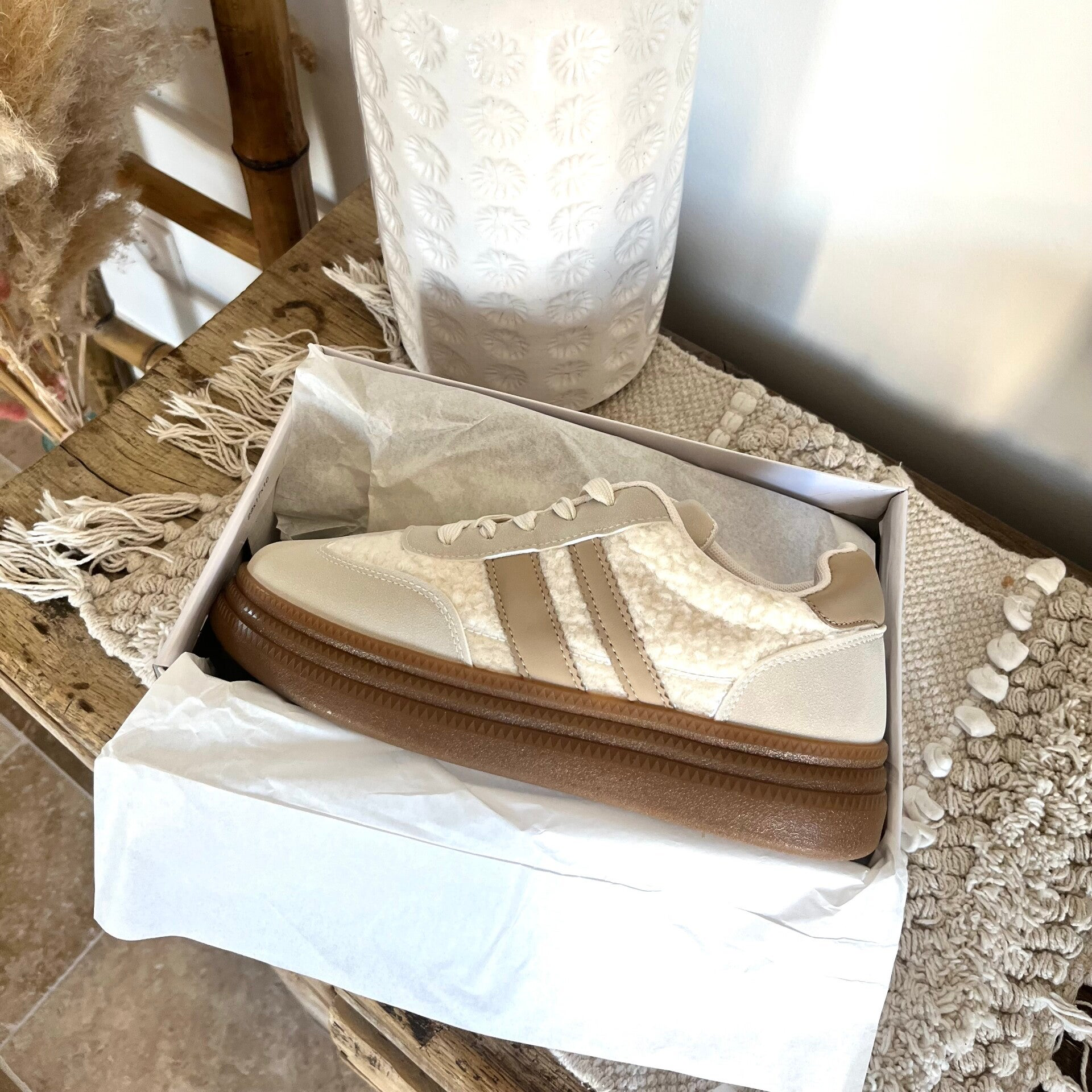 Craquez pour ces baskets basses à semelle gomme revisitées avec une doublure effet mouton ultra cosy. Leur allure sporty-chic s’associe parfaitement à un look urbain ou cocooning. Faciles à enfiler et idéales pour les journées fraîches, elles allient confort, chaleur et style. Un essentiel de la saison !