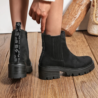 Ces bottines noires en suédine allient style et confort pour affronter les journées fraîches. Dotées d’une doublure chaude en fausse fourrure et d’une semelle crantée antidérapante, elles offrent un excellent maintien.