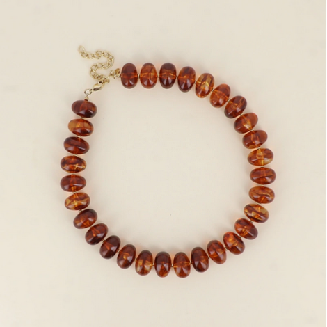 - Collier sur câble composé de perles ovales en résine et en acier inoxydable.