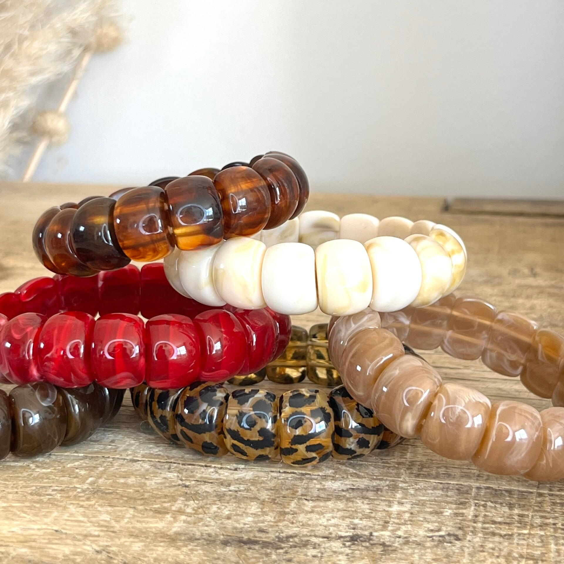 - Bracelet élastique composé de pièces en acétate.