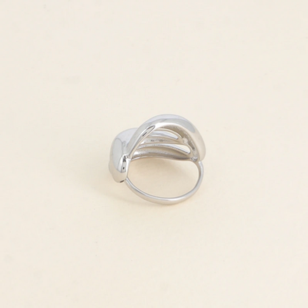 - Bague en acier inoxydable composée de 3 formes qui s'entrelacent.