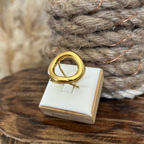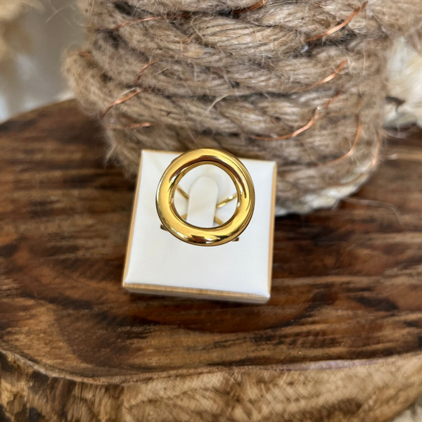 - Bague en acier inoxydable composée d'un grand cercle ajouré.