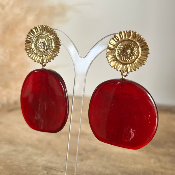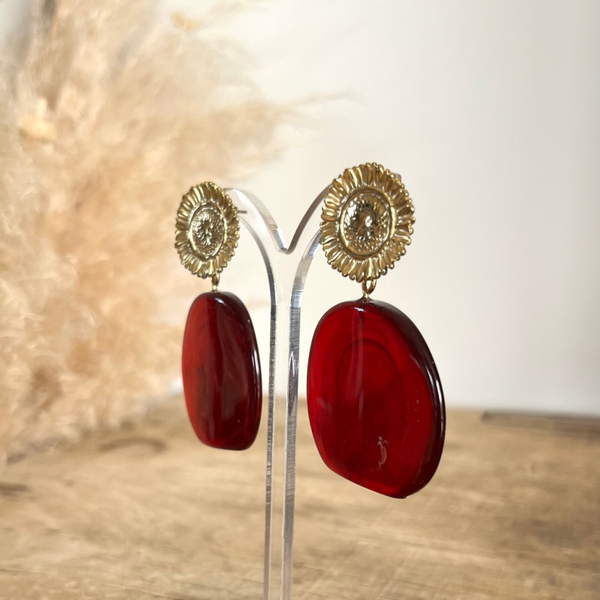 - Boucles pendantes avec motif floral aux petales texturées et piece en acétate