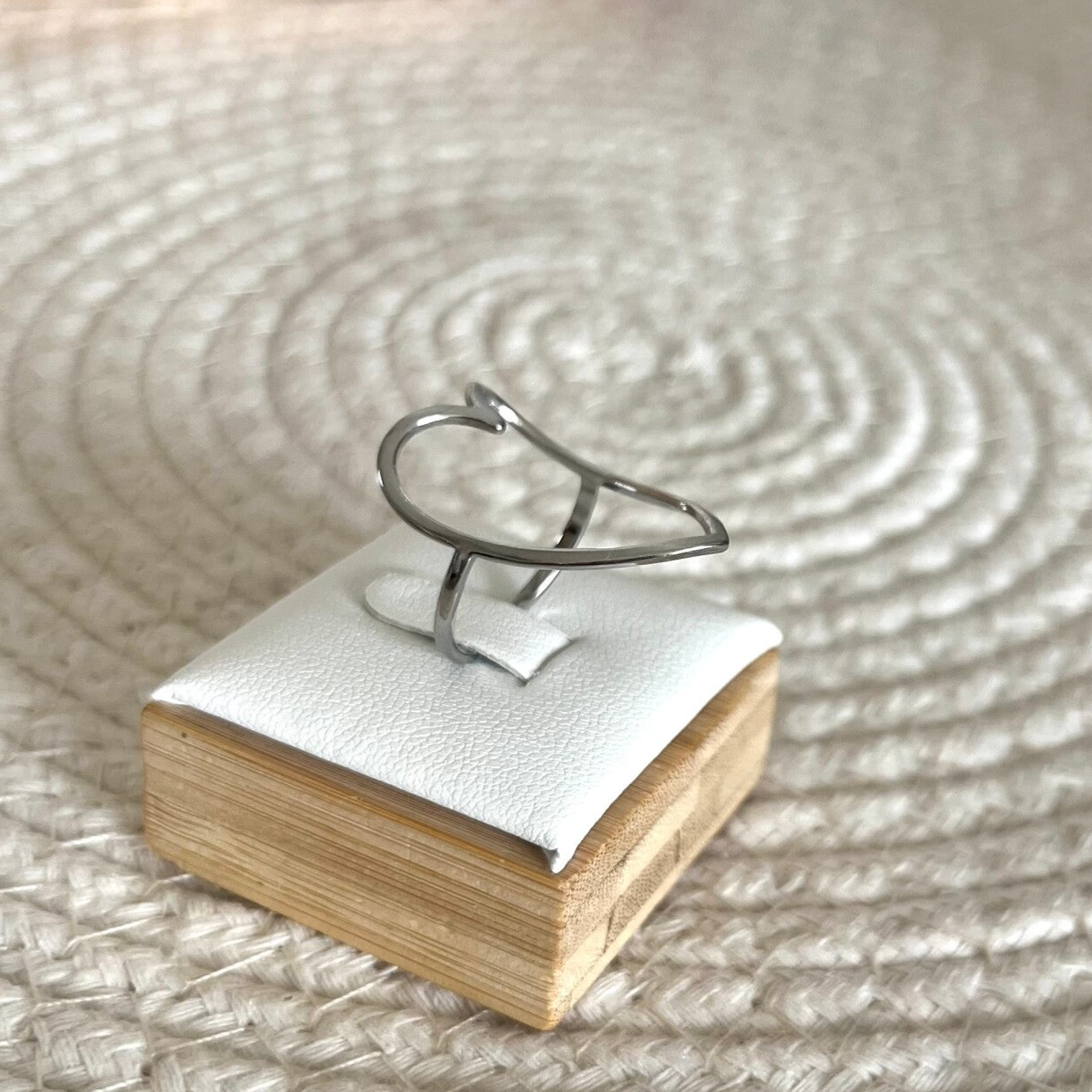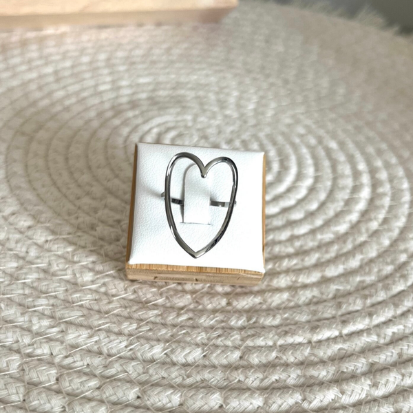 - Bague en acier inoxydable composée d'un coeur ajouré lisse.