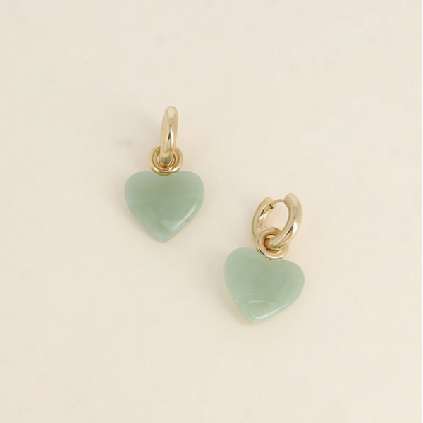 - Boucles d'oreilles type créoles avec fermoir à charnière en acier inoxydable composées d'un coeur plat en acétate.