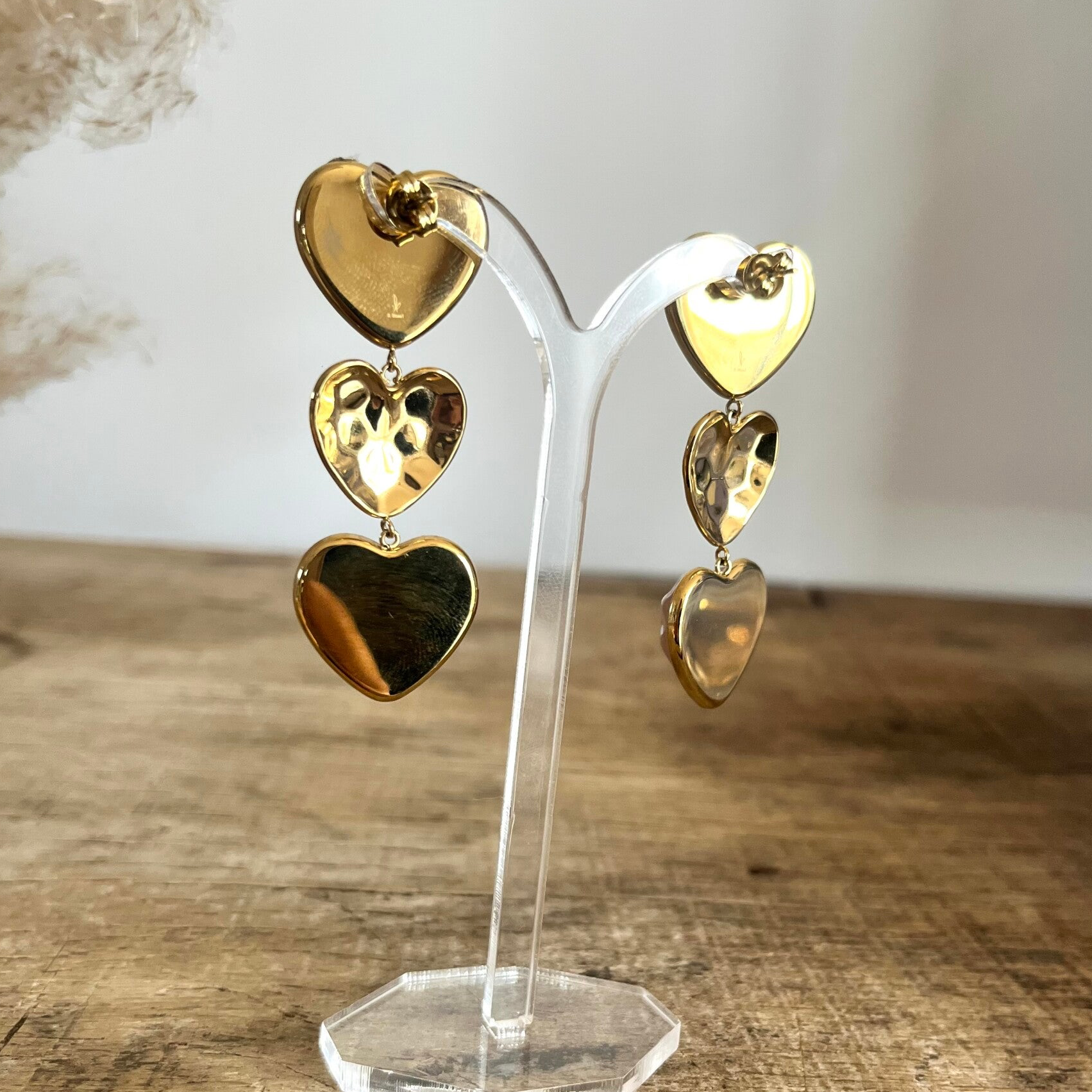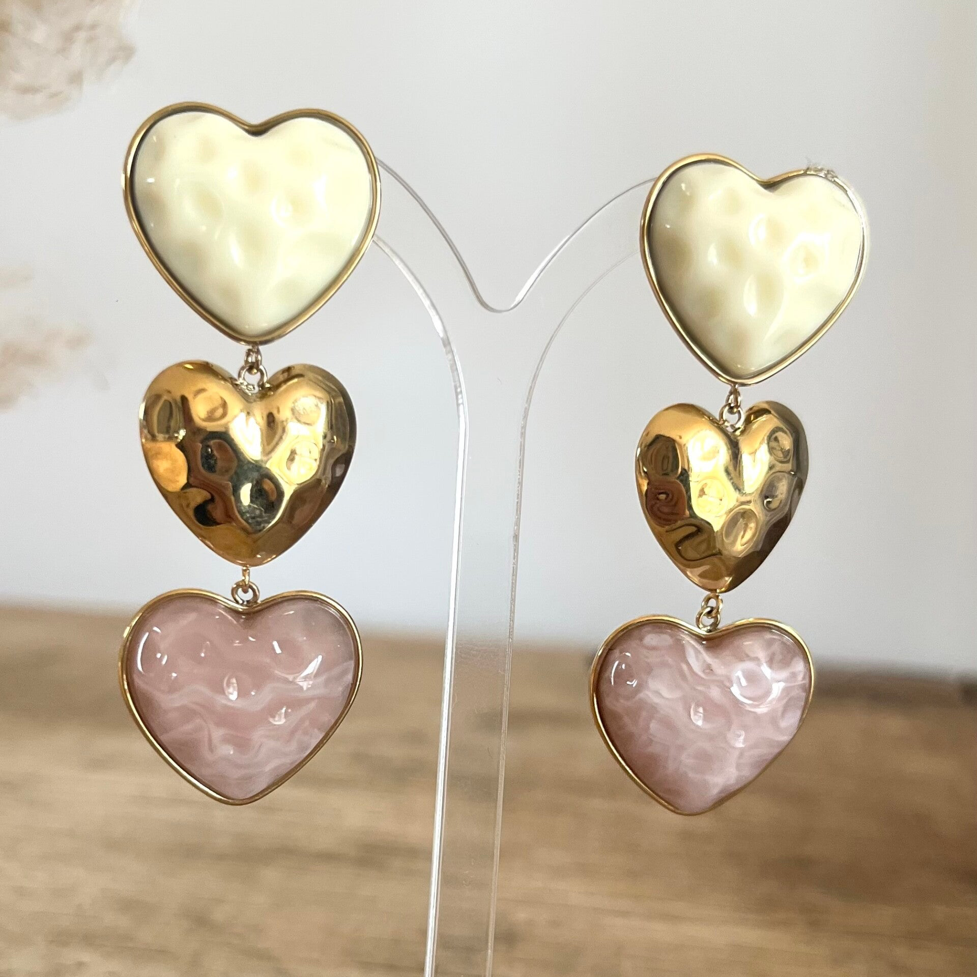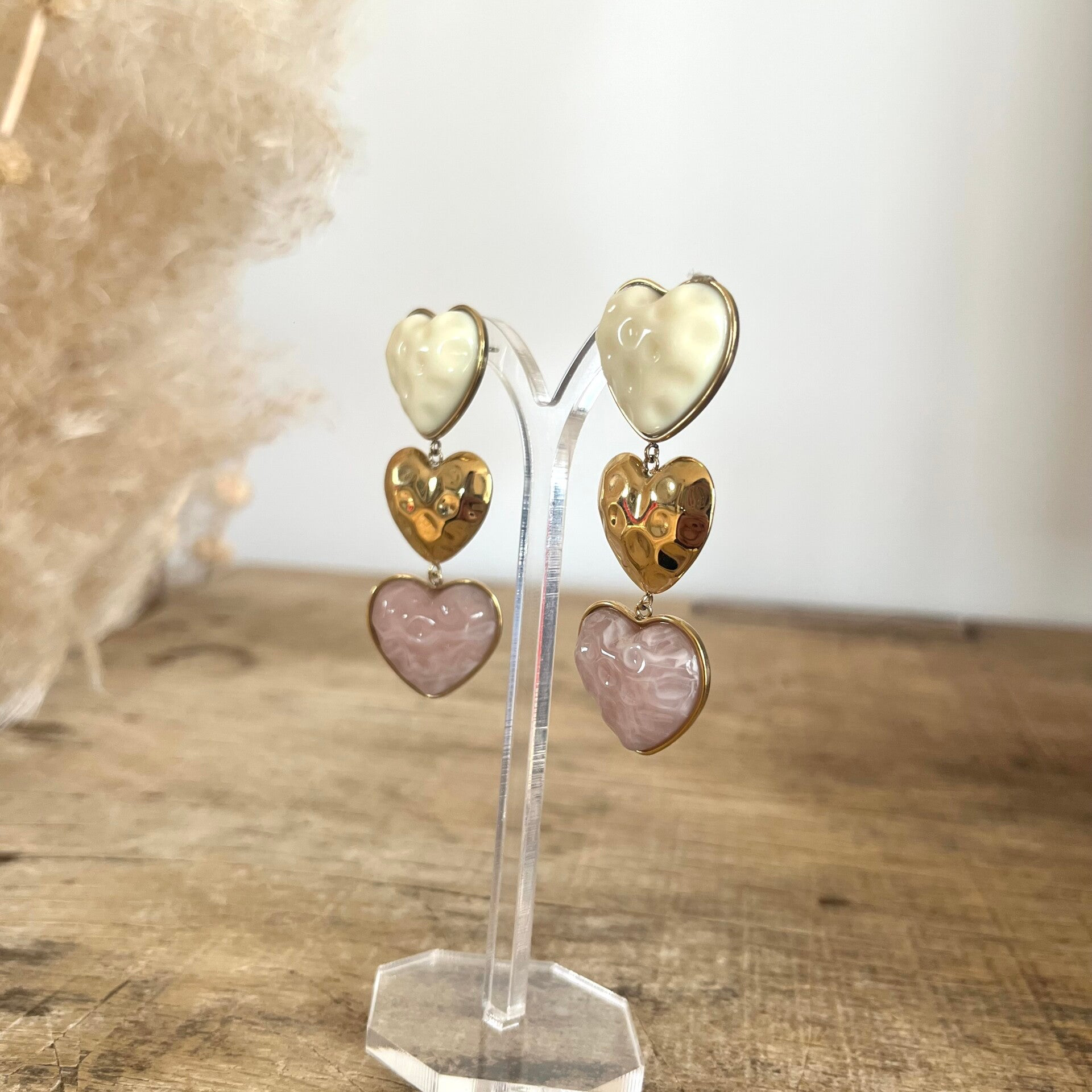 - Boucles d'oreilles à puce en acier inoxydable composées de 3 pièces en forme de coeur dont 2 en acétate coloré