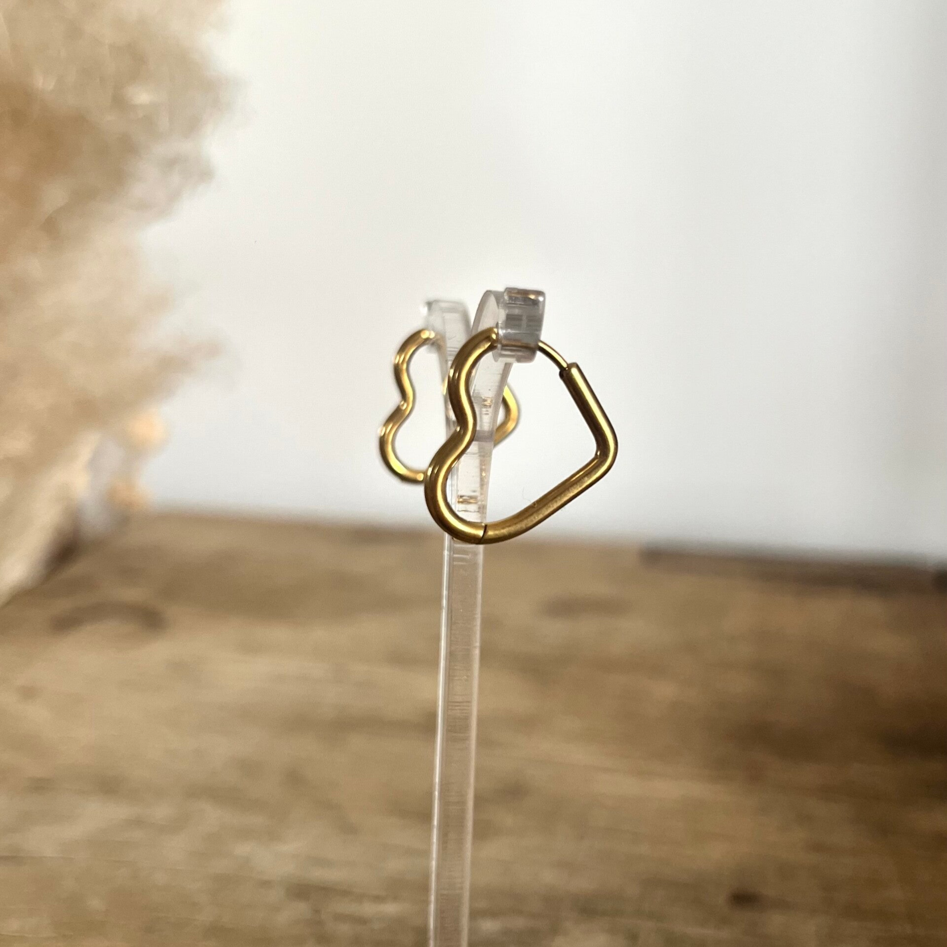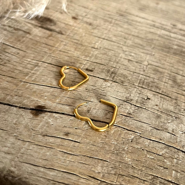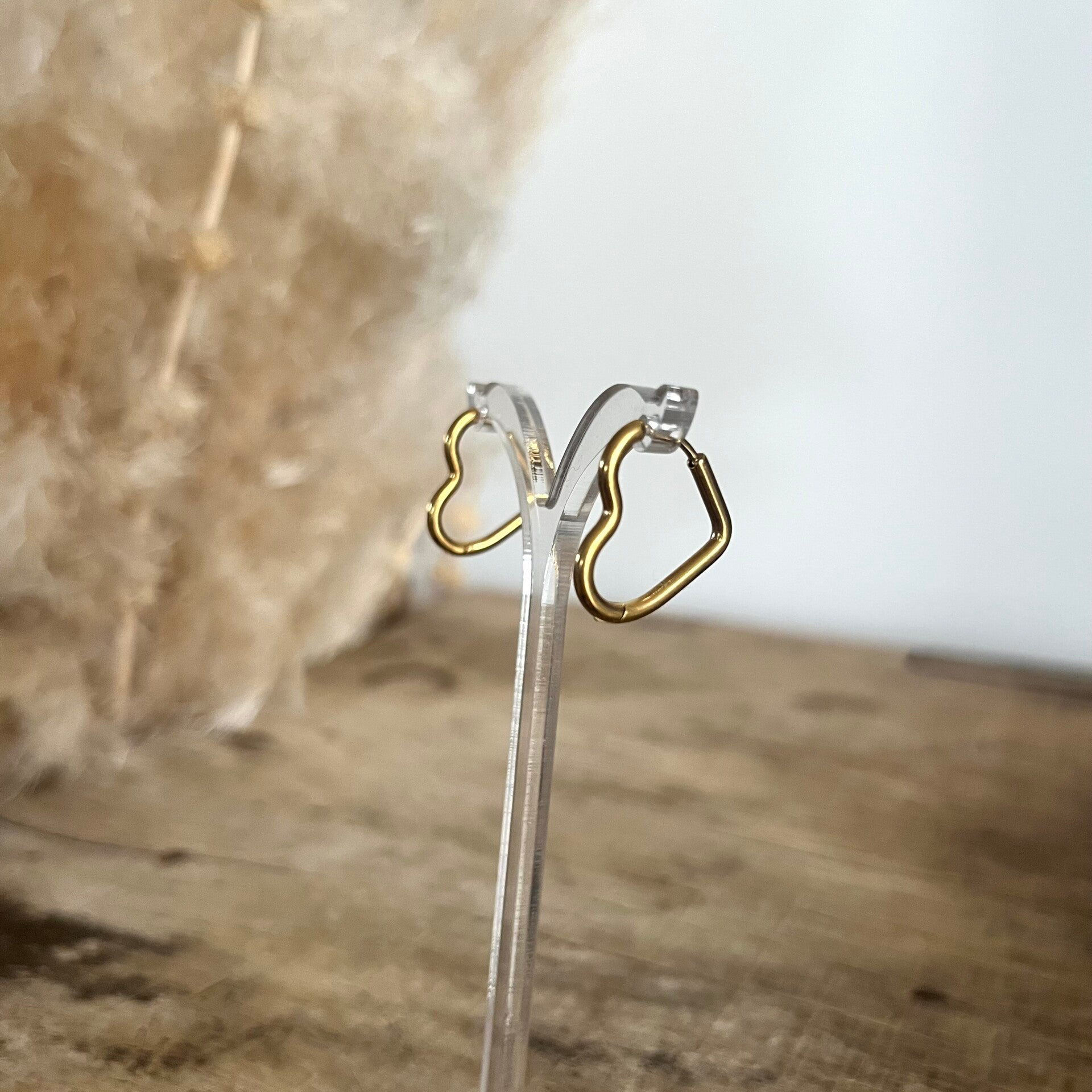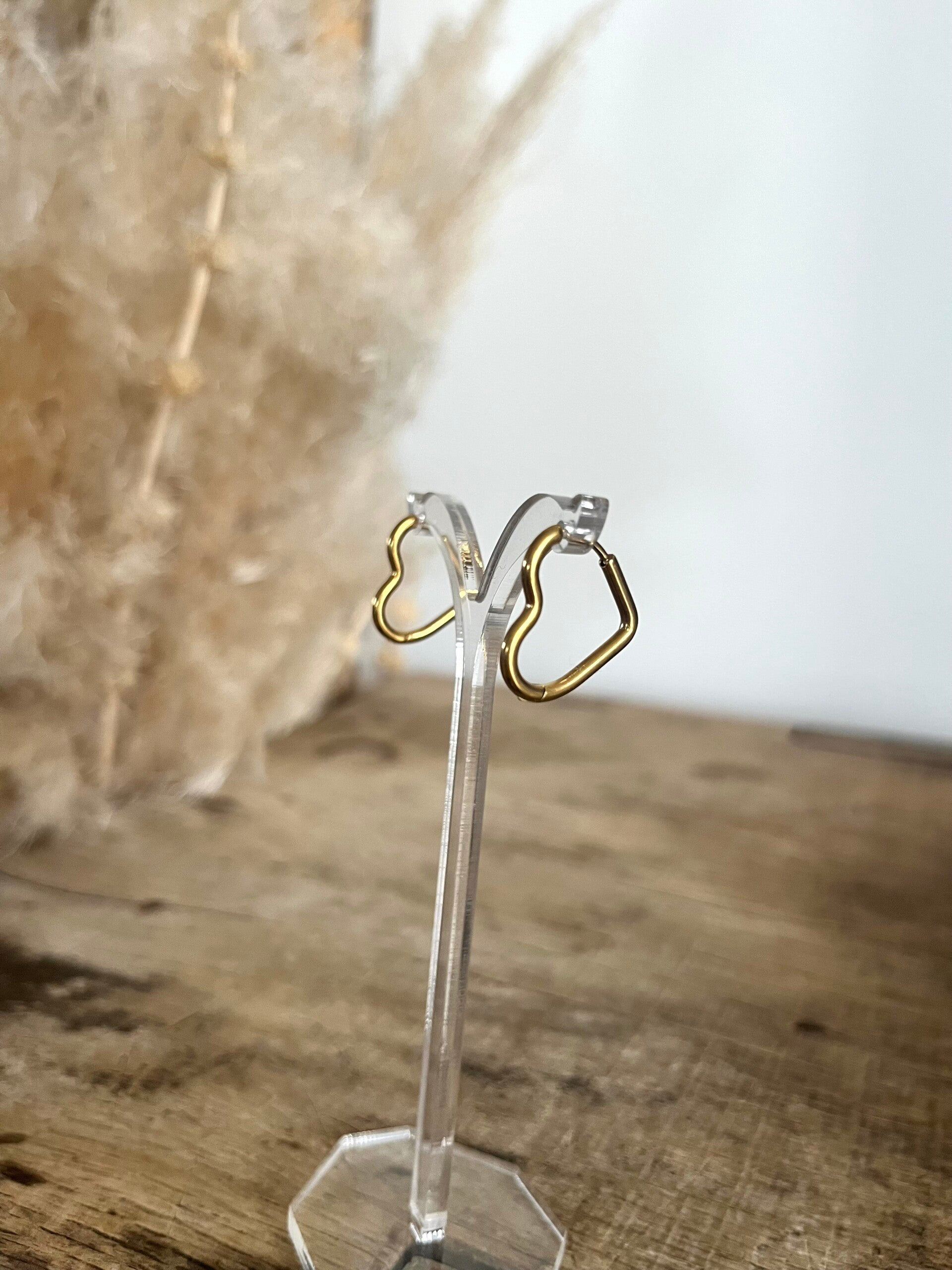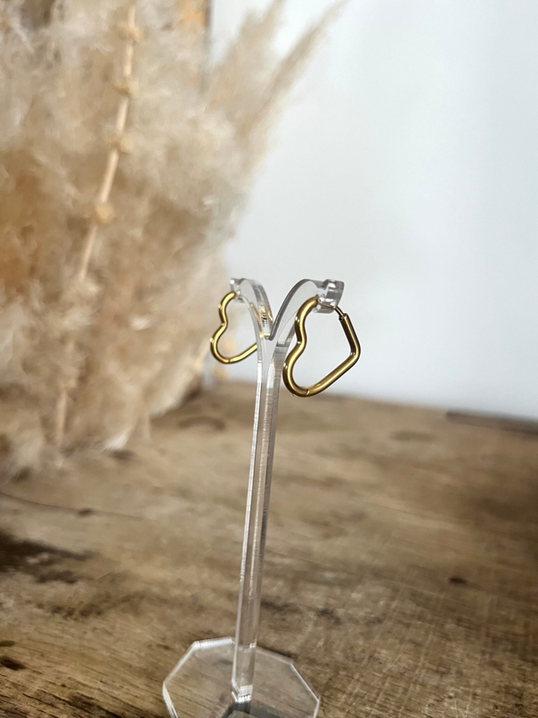- Boucles d'oreilles type créoles à fermoir charnière en acier inoxydable en forme coeur.
