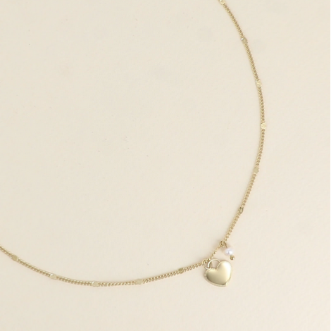 - Collier sur chaîne en acier inoxydable composé d'un pendentif coeur et une petite perle d'eau douce.