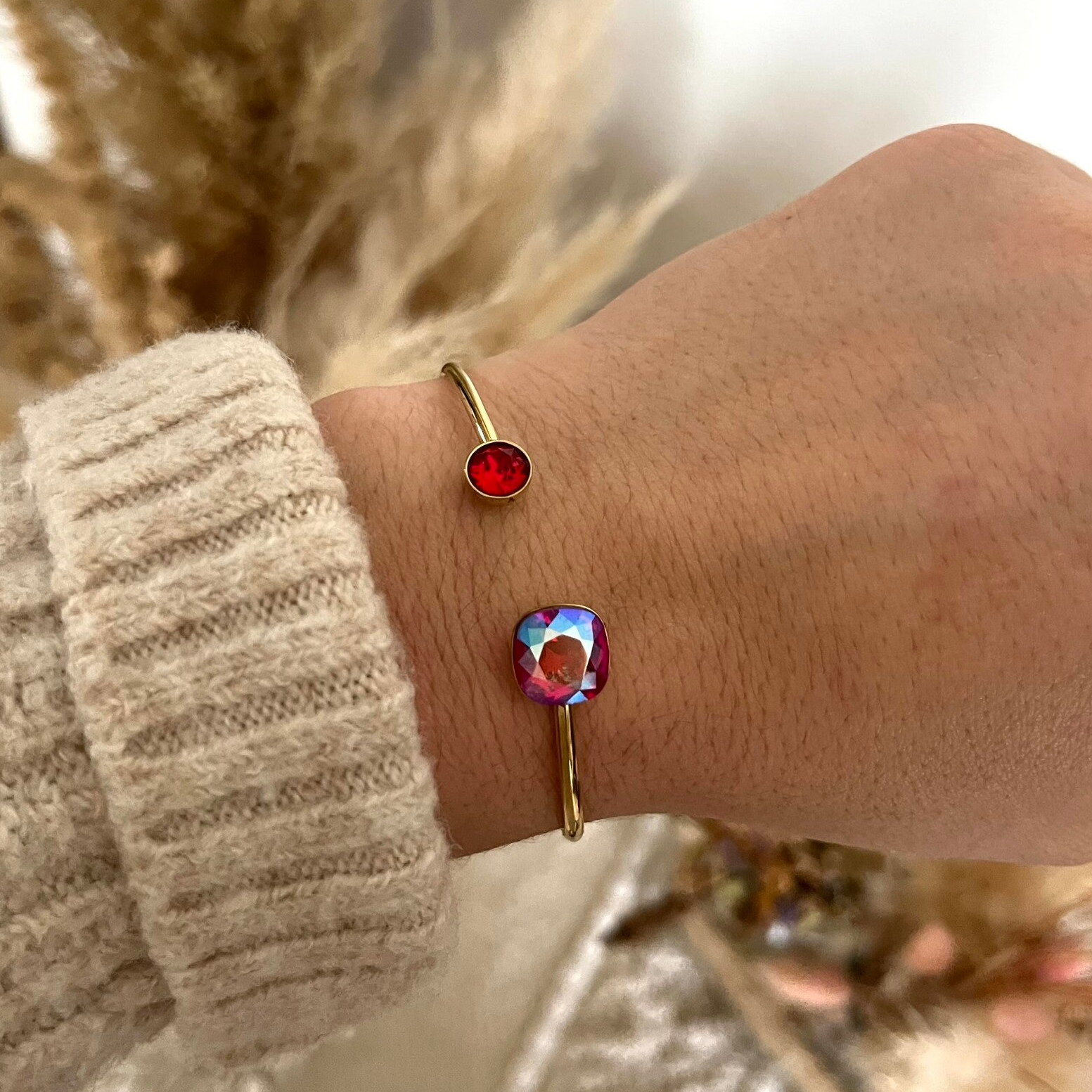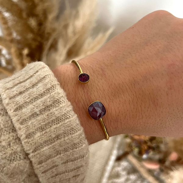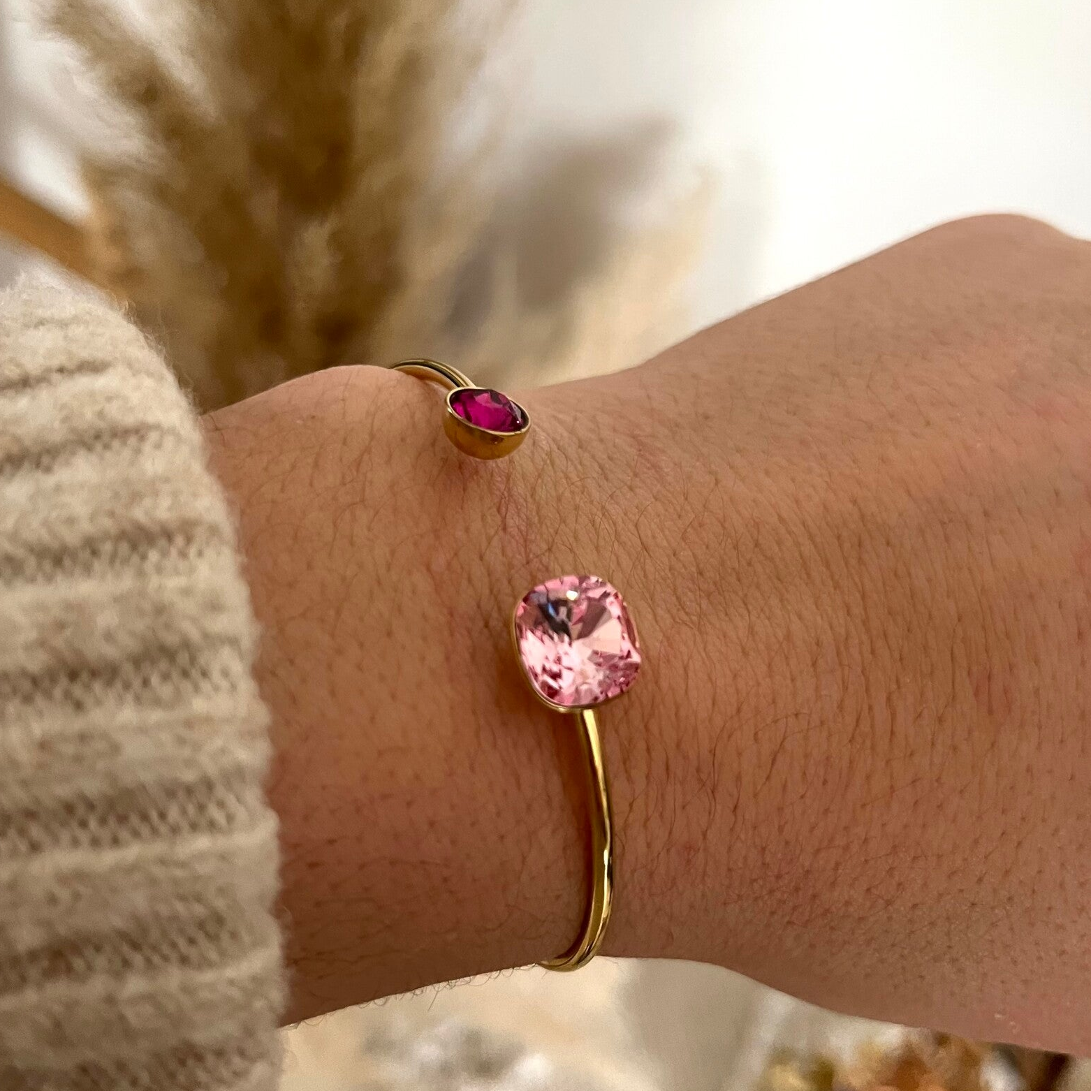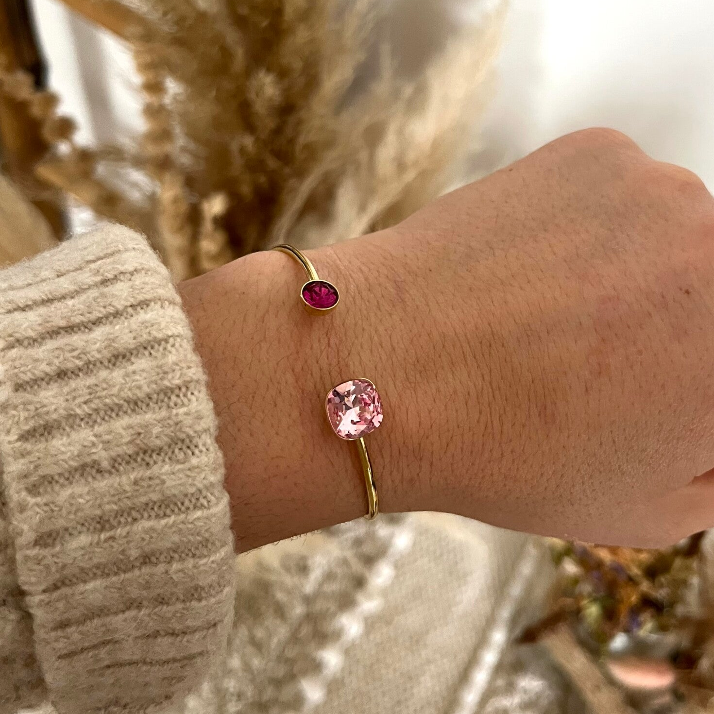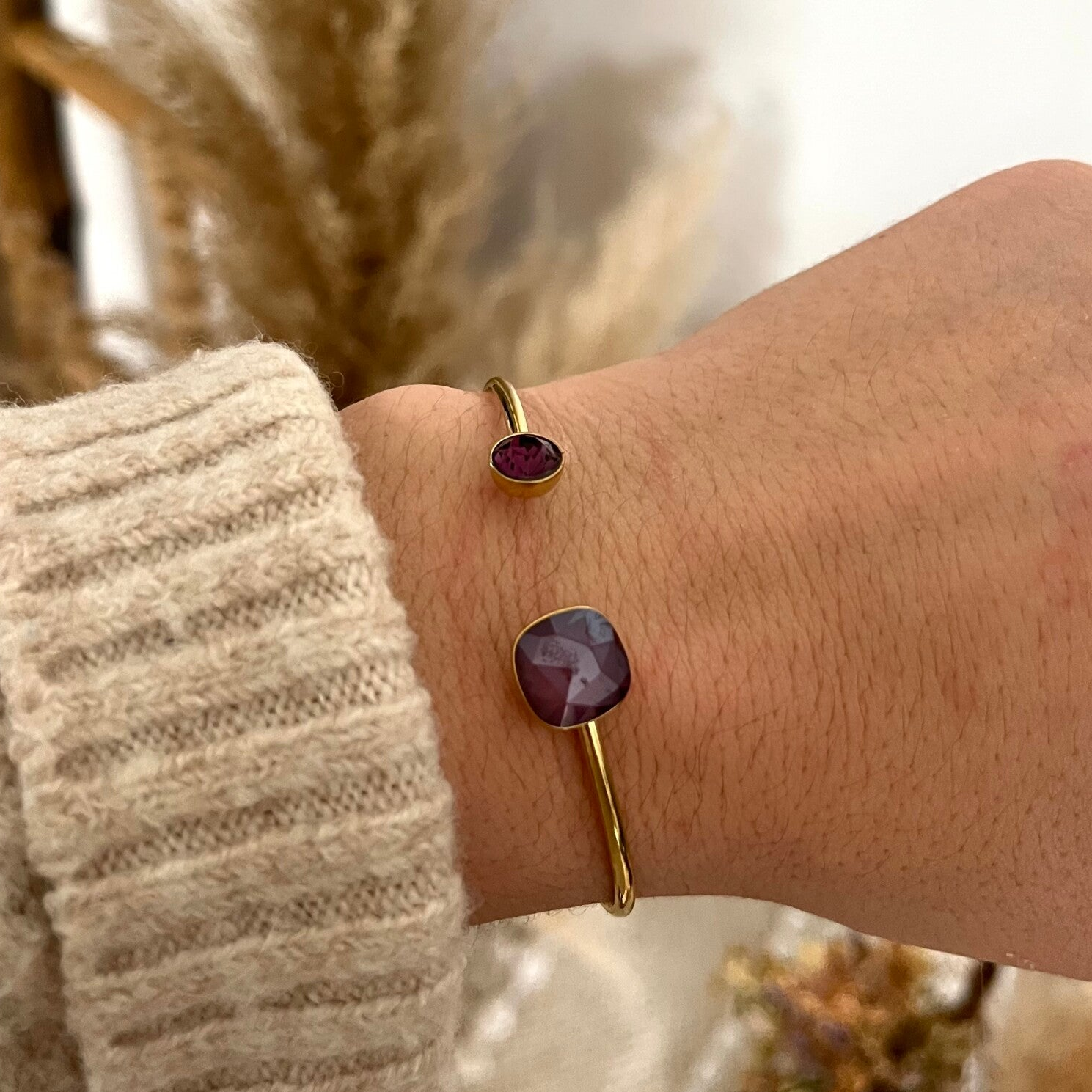 - Bracelet jonc fin en acier inoxydable, orné de cristaux de Swarovski®