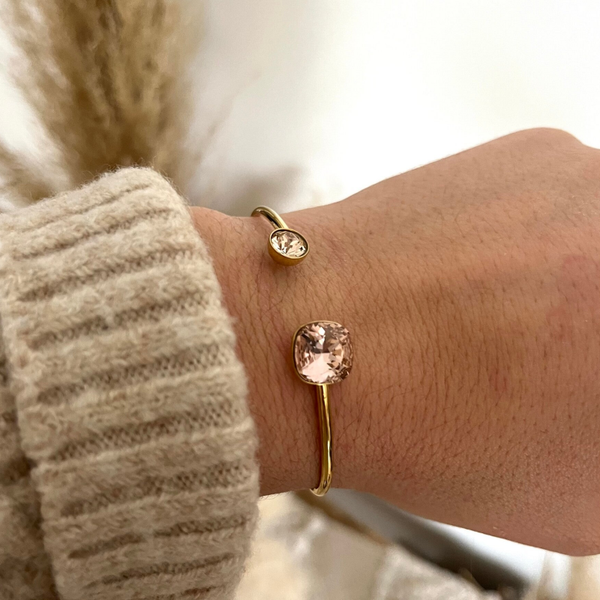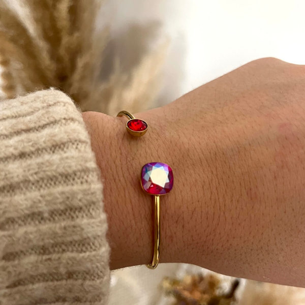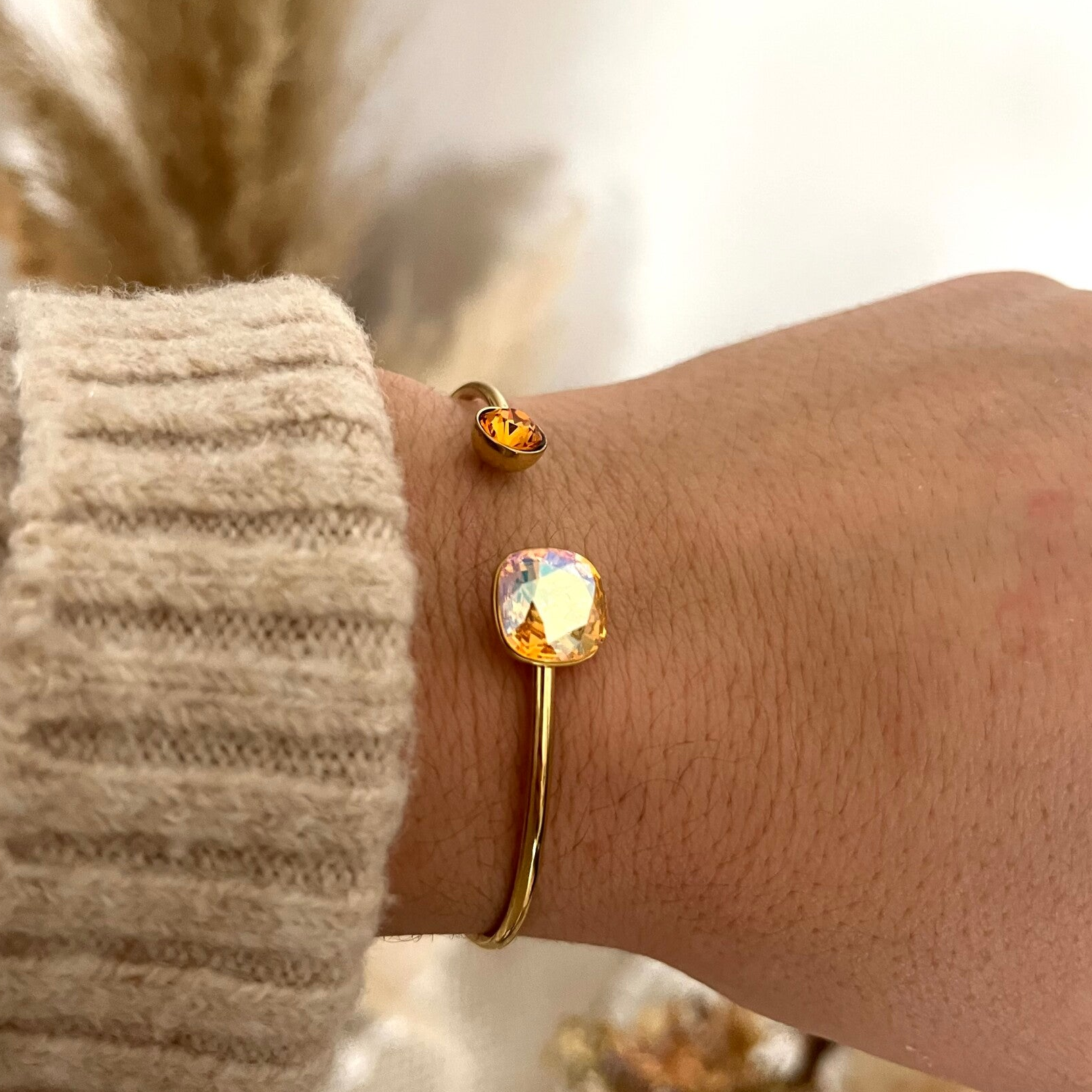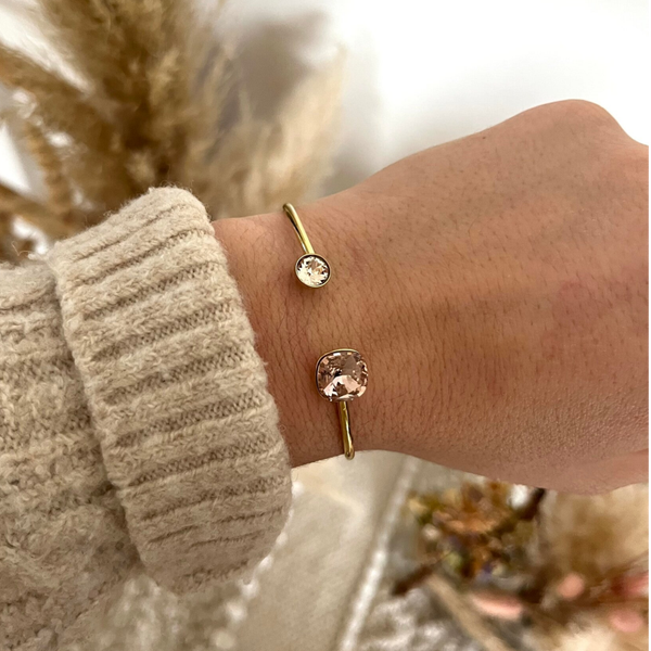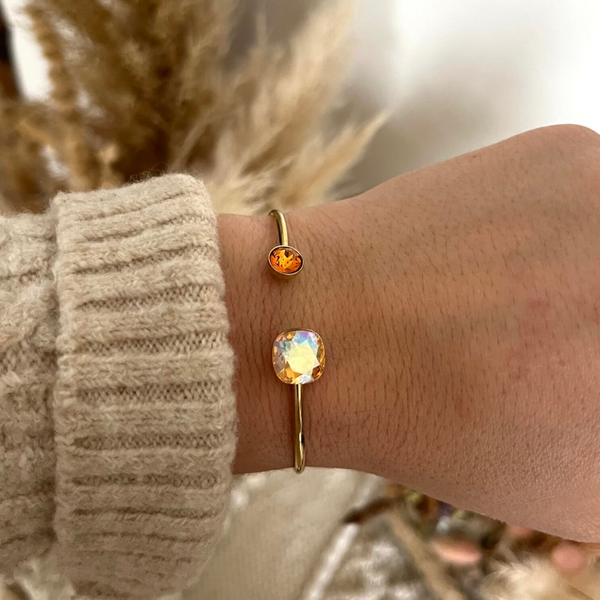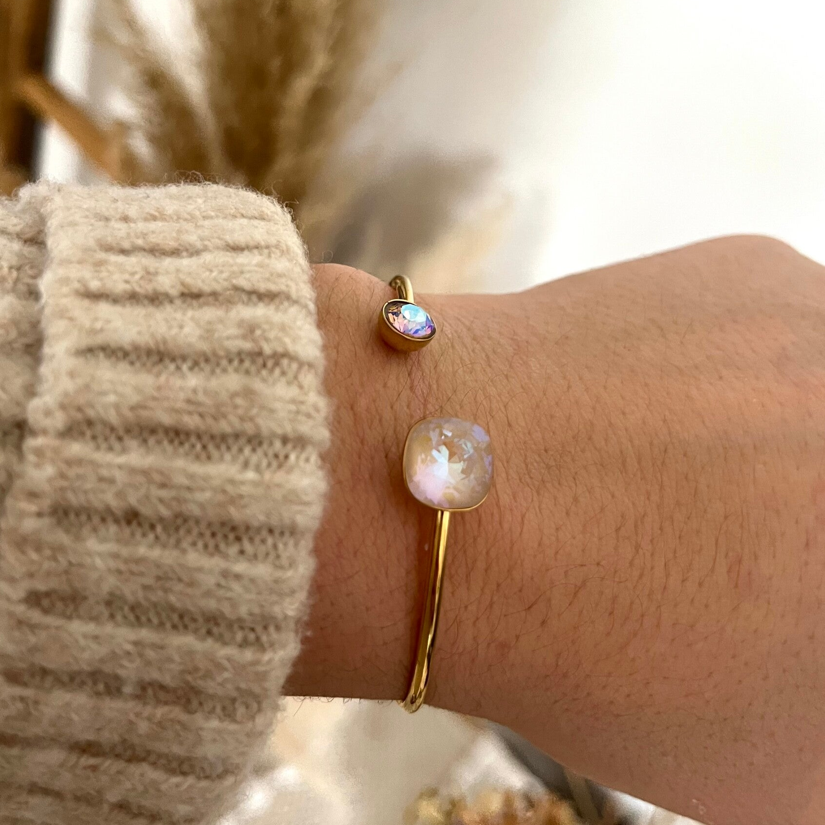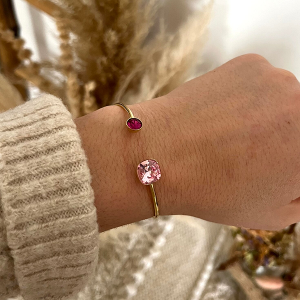 - Bracelet jonc fin en acier inoxydable, orné de cristaux de Swarovski®