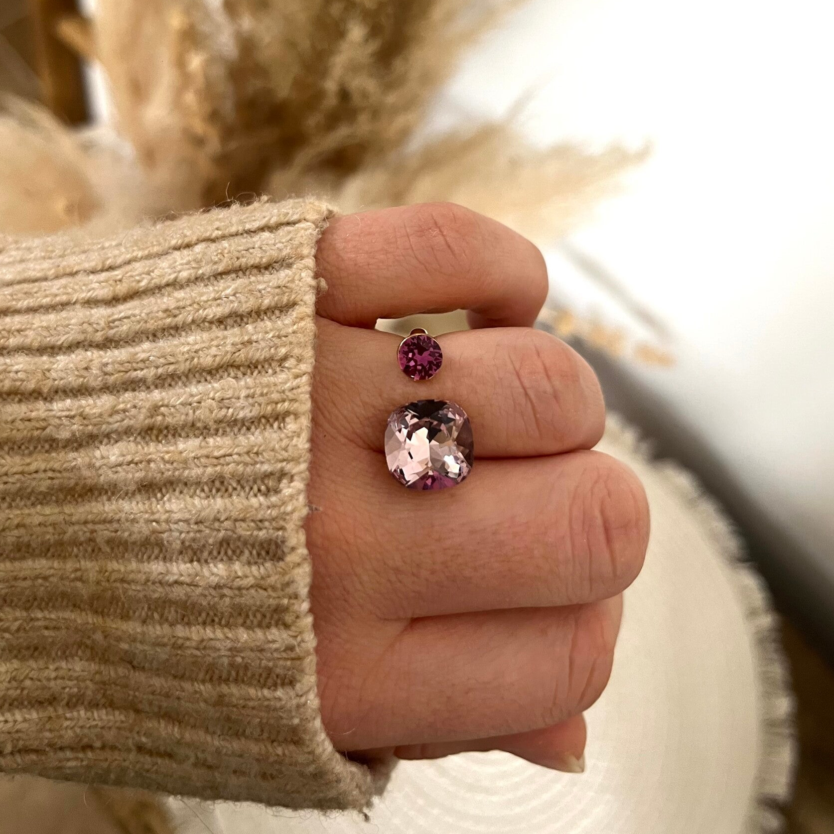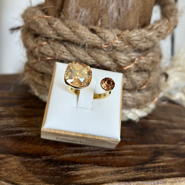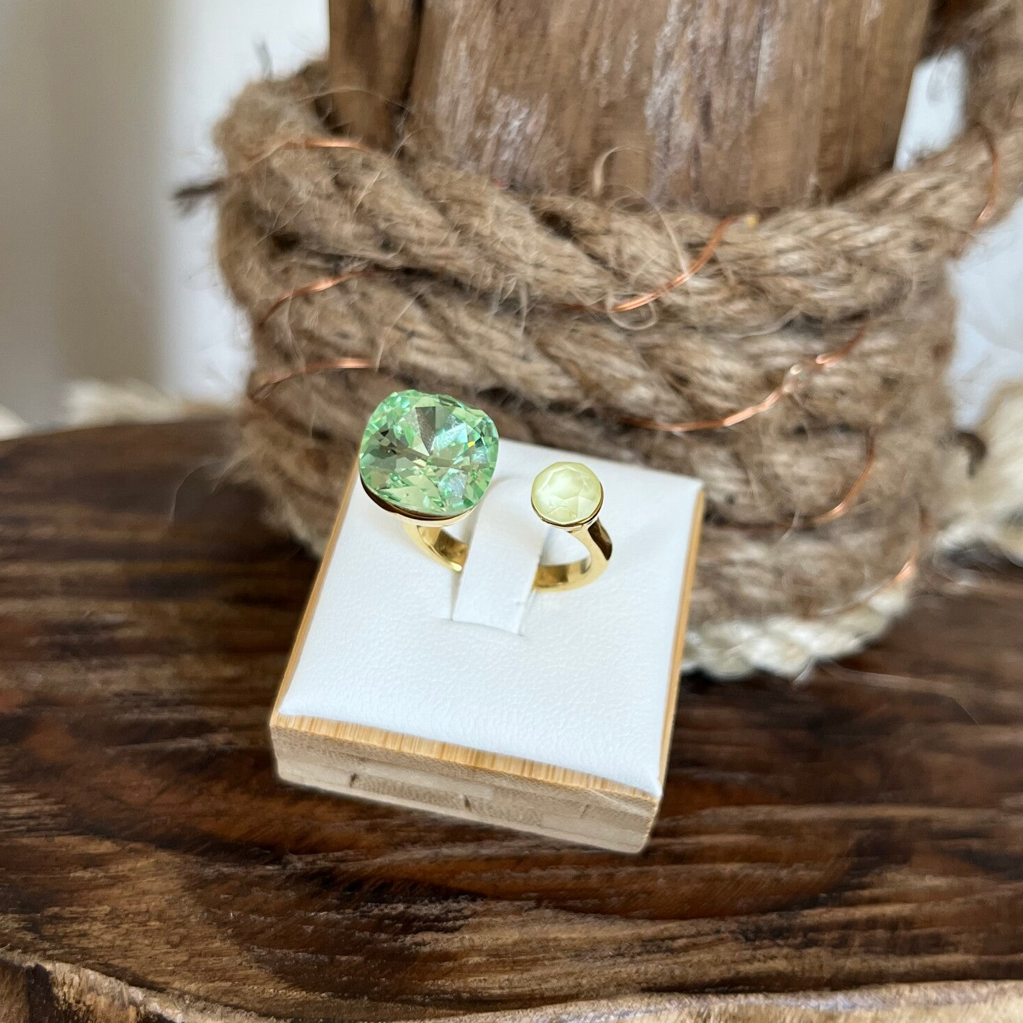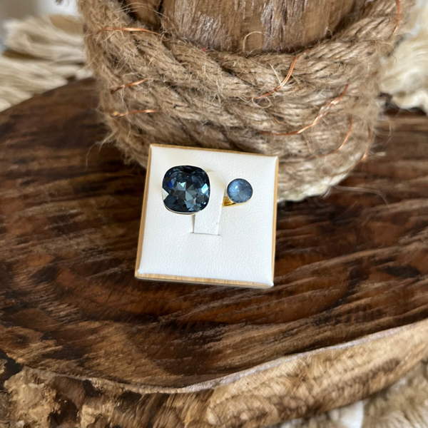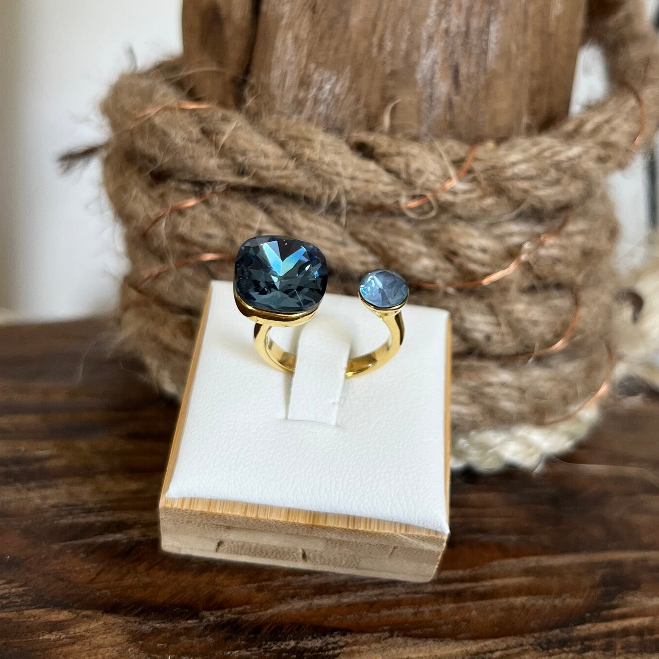 - Bague en acier inoxydable ornée de deux cristaux de Swarovski®.