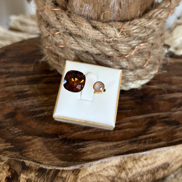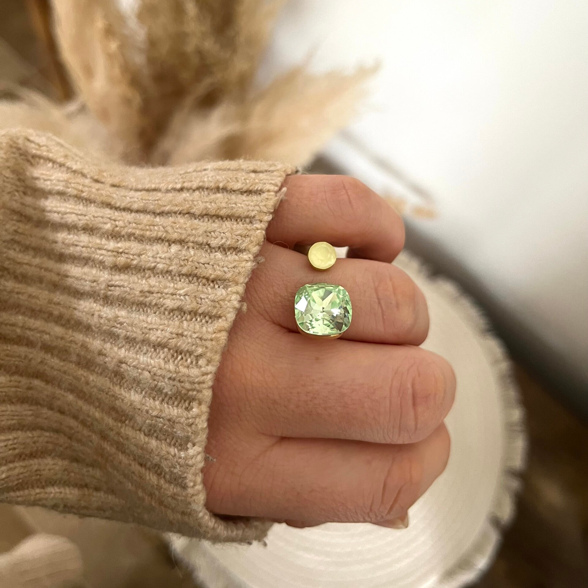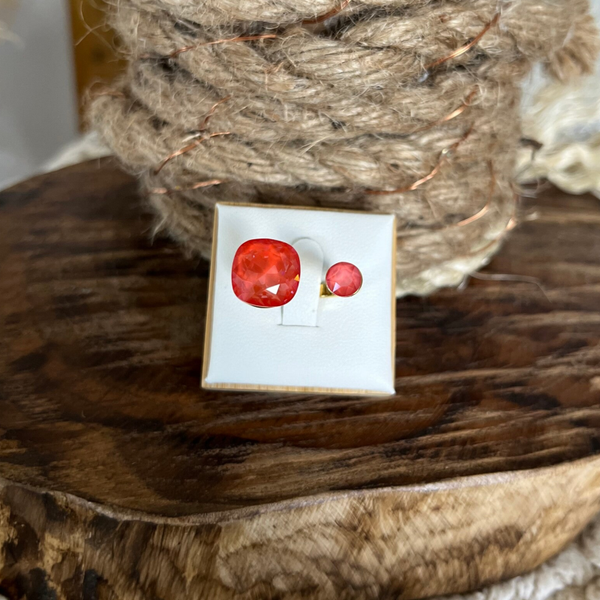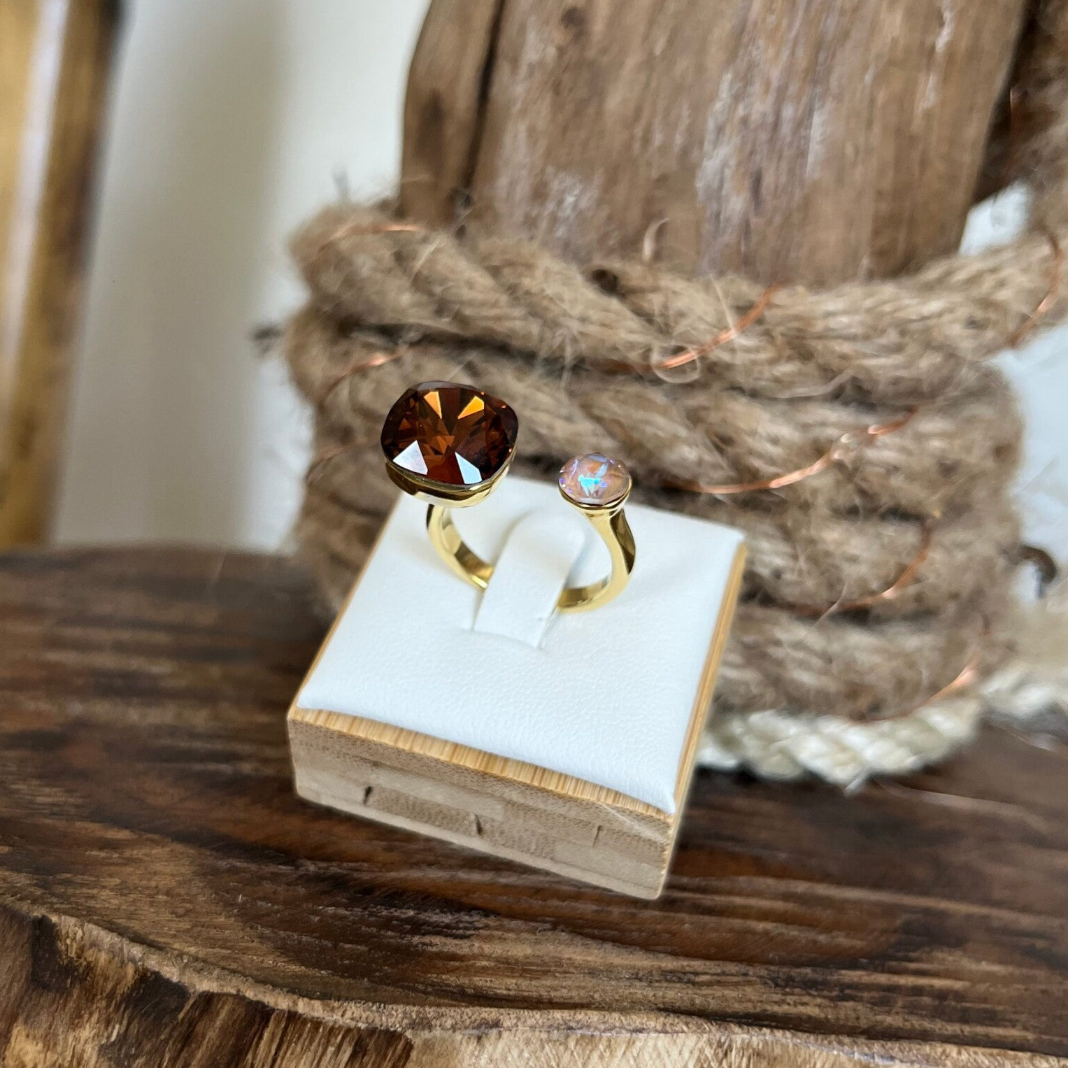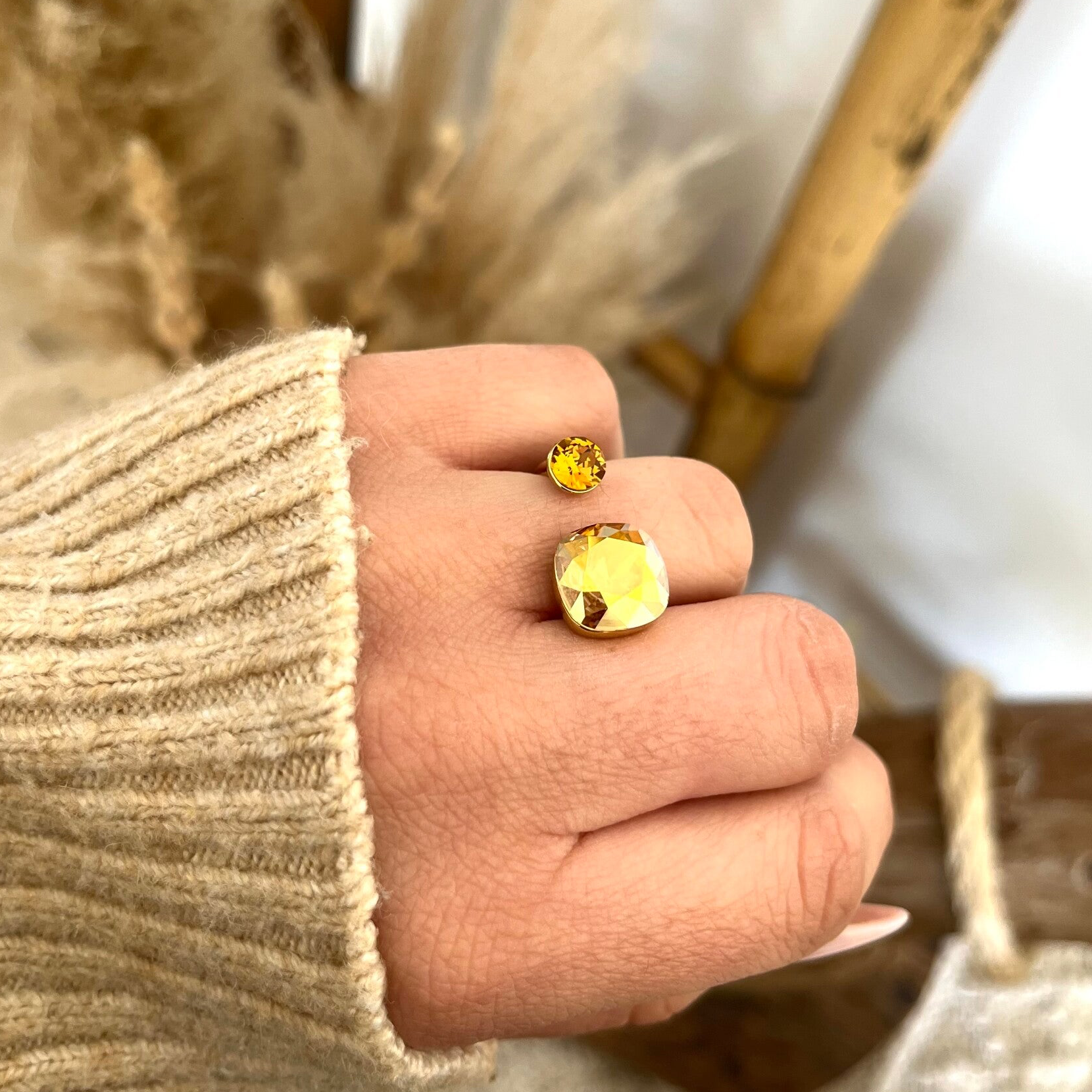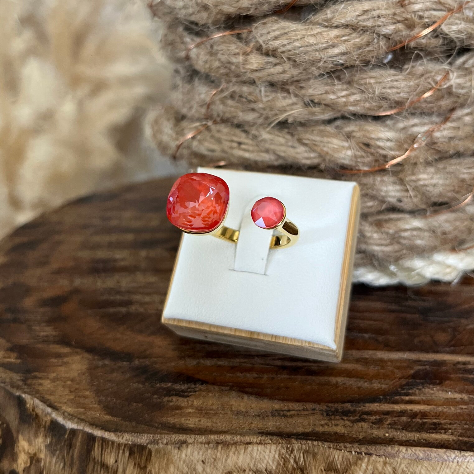 - Bague en acier inoxydable ornée de deux cristaux de Swarovski®.