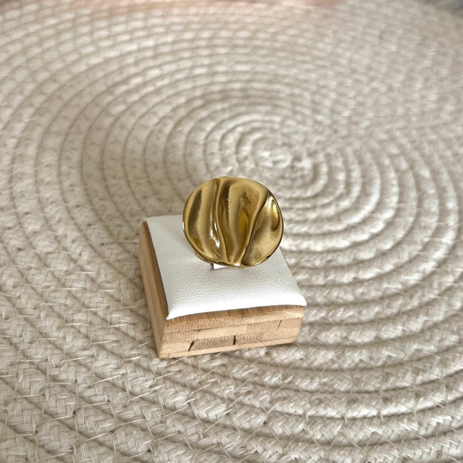 - Bague en acier inoxydable composée d'une pièce ronde texturée.