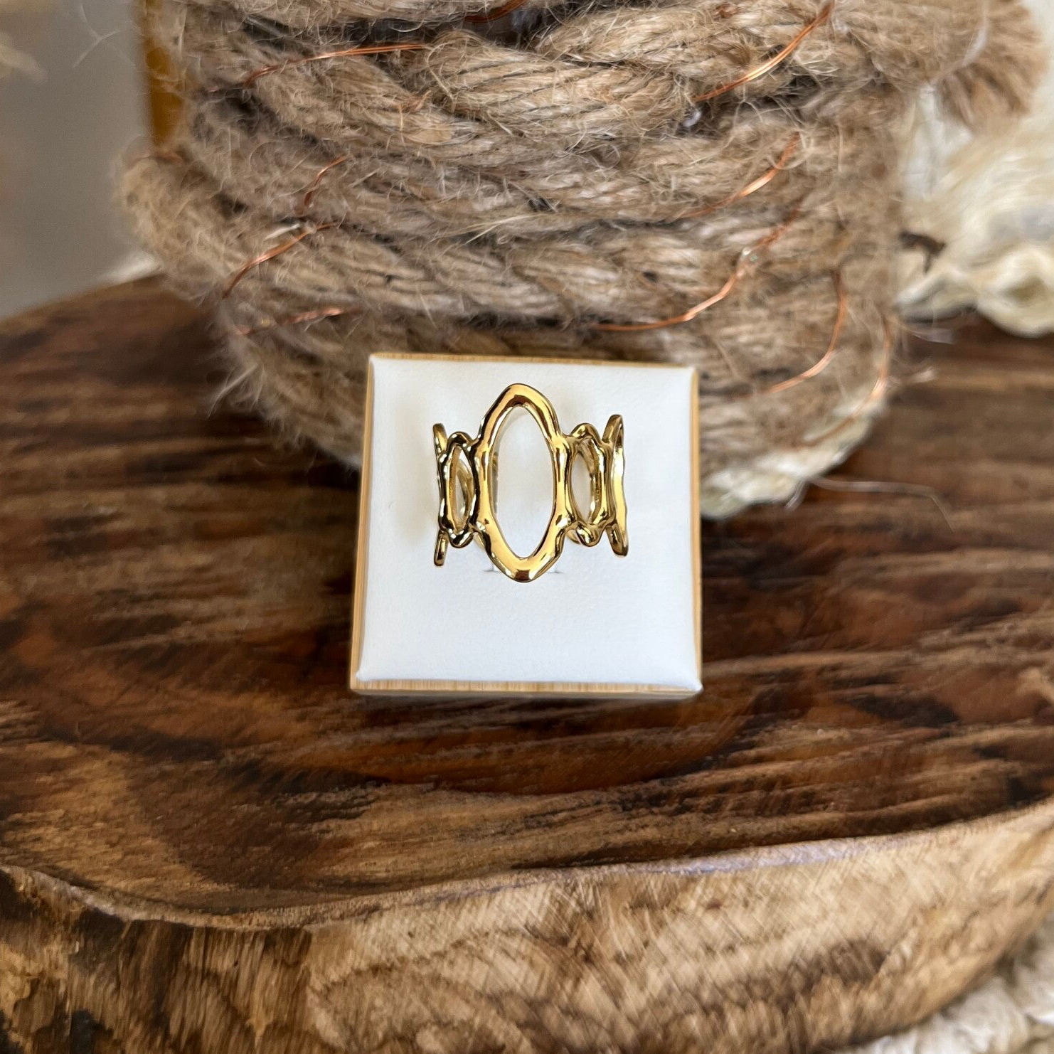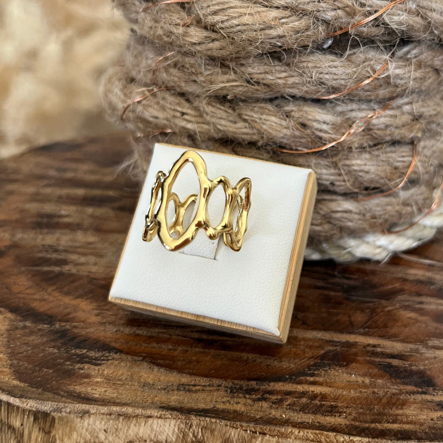 - Ajustable, la bague se resserre ou s'agrandit : de la taille 50 à 58