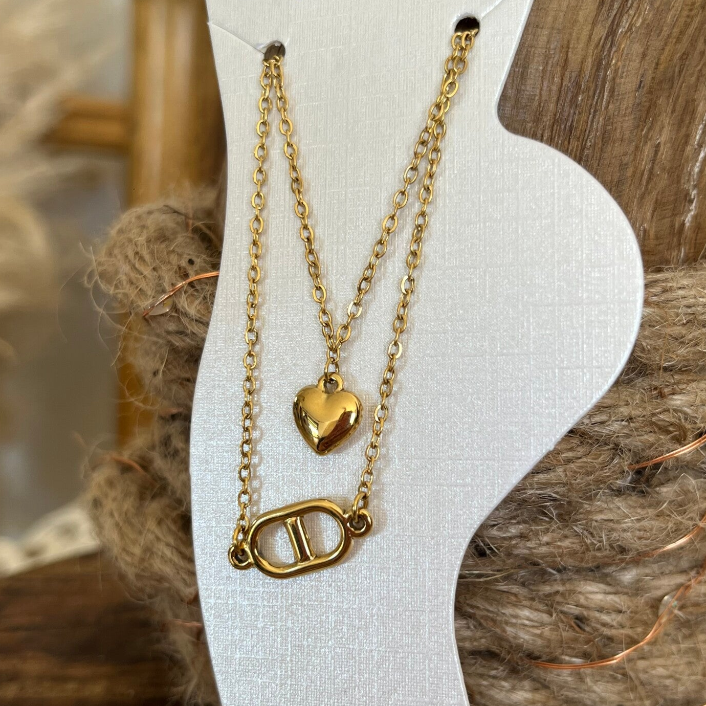 Composée de deux fines chaînes délicates avec au centre, un maillon, accompagné d’une petite breloque cœur suspendue.